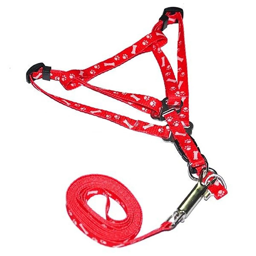 Регулируемый, для собак, кошек жгут поводок с ошейником для Модные кости лапы печати Безопасность тяги веревочные ошейники, шлейки и поводки