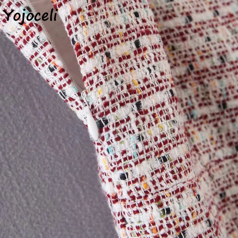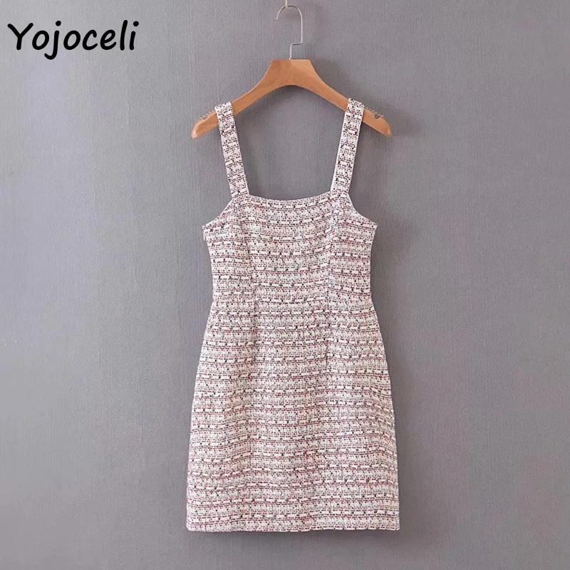 Yojoceli 2019 осенне-зимнее яркое твидовое Платье женское облегающее клетчатое мини-сарафан уличная женская одежда vestidos