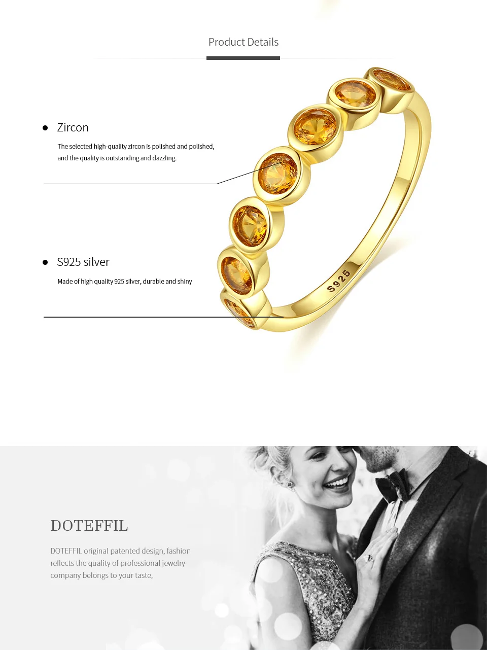 Бренд: DOTEFFIL Тип камня: 100% натуральный кристалл Цвет циркония: золотой Циркониевый блеск: AAAAA Поверхность из циркония: без недостатков Размер: 3 мм * 3 мм Вес: 1,52 г Металлический Материал: 100% 925 пробы серебро Металлический штамп: S925 Упаковка: подарочный пакет Они модные и элегантные, подходят для ношения круглый год Вы можете носить его на свадьбу, вечерние, помолвку, годовщину Роскошная блестящая ручная работа/высокое качество