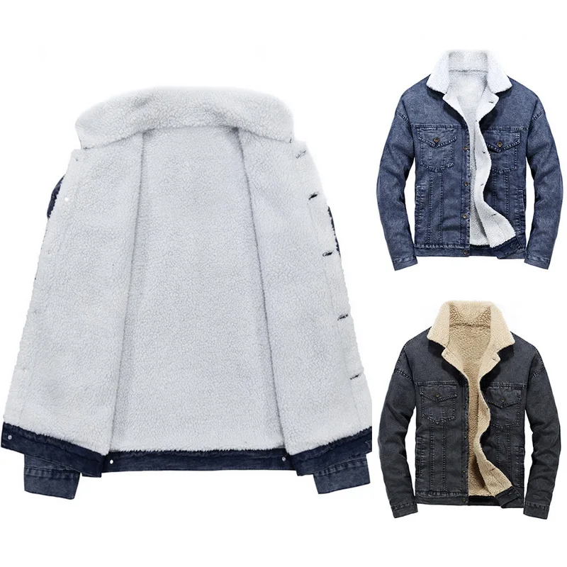 Мужская мода зима берберский флис утолщаются утепленные джинсы куртки 2019 новые мужские с длинным рукавом со стоячим воротником джинсовый Повседневный тонкий пиджак пальто