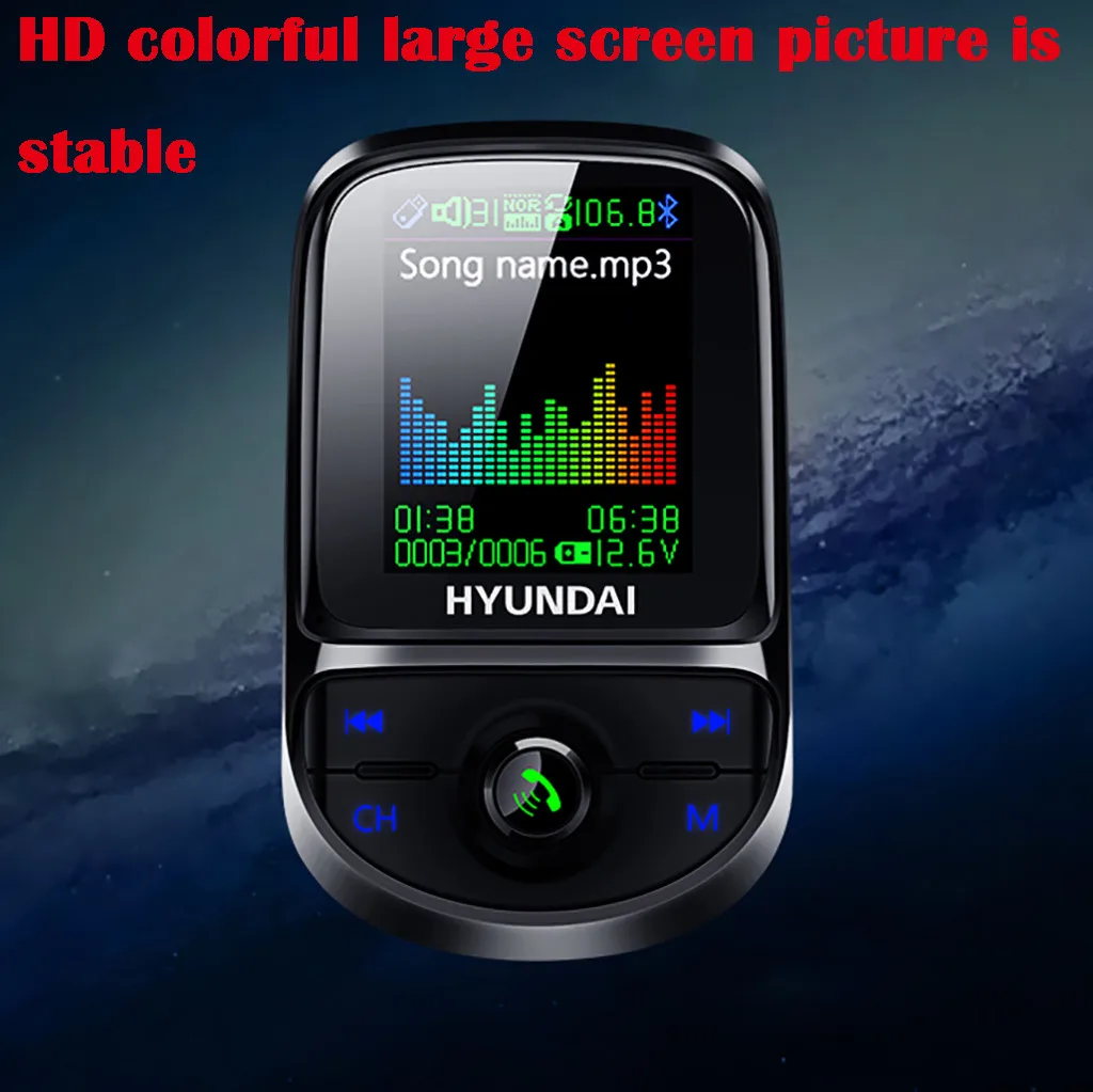 Поддержка hands-free Микрофон, удобный и безопасный ответ на звонки; Идентификатор звонящего. После включения, он Автоматически подключается и автоматически входит в состояние сопряжения. Память отключения питания Функция, частота памяти, трек, перезагрузка выключения питания, начало воспроизведения с Эта песня. Не ограничен мобильным телефоном Телефонов, подходит для основных моделей 12В-24В на рынке, Совместим с массивным приложением. Цветной Автомобильный MP3, 2019 Плеер, который сбоку является ярким пятном. Четыре режима воспроизведения, AUX Play mode / U disk play / TF card play / Bluetooth play, plug and play. Двойная зарядка через USB Интерфейс, высокая сила тока, высокая скорость, быстрая зарядка, на один шаг быстрее, QC3.0 Зарядка от вспышки.Технические параметры: