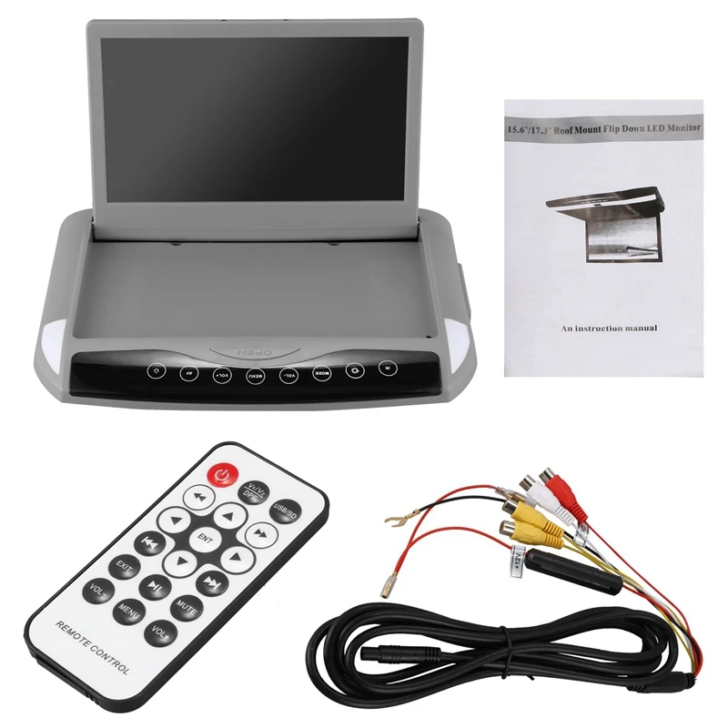 Серый Автомобильный откидной монитор, с USB и SD. Цифровая панель с высоким разрешением: 800x480. Верхняя консоль с двумя супер яркими светодиодный купольными лампами.