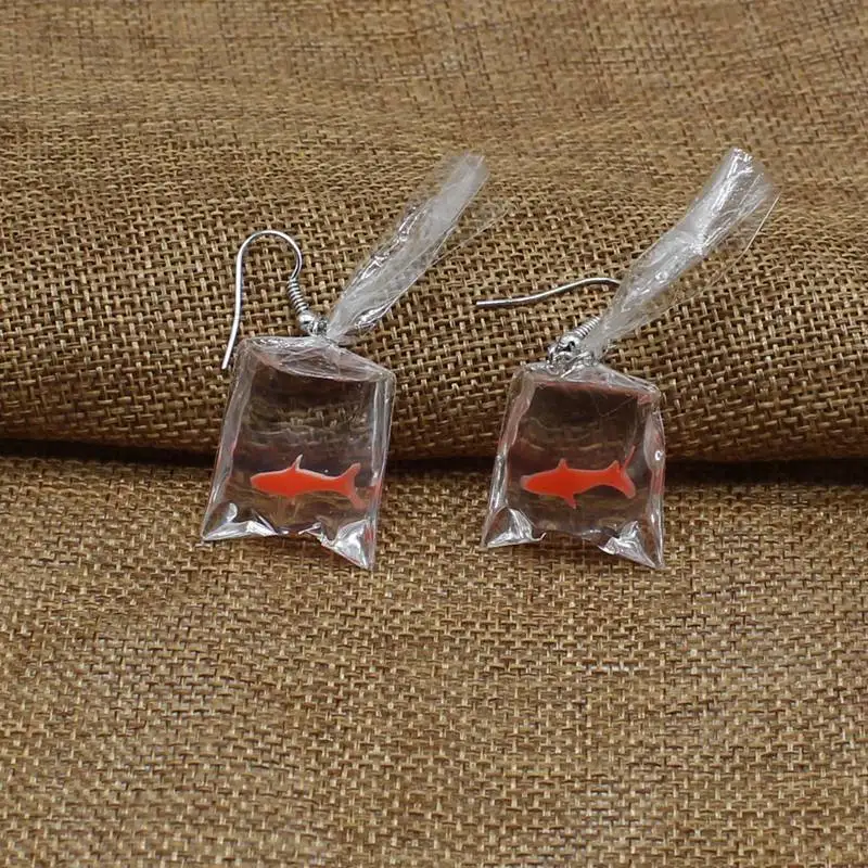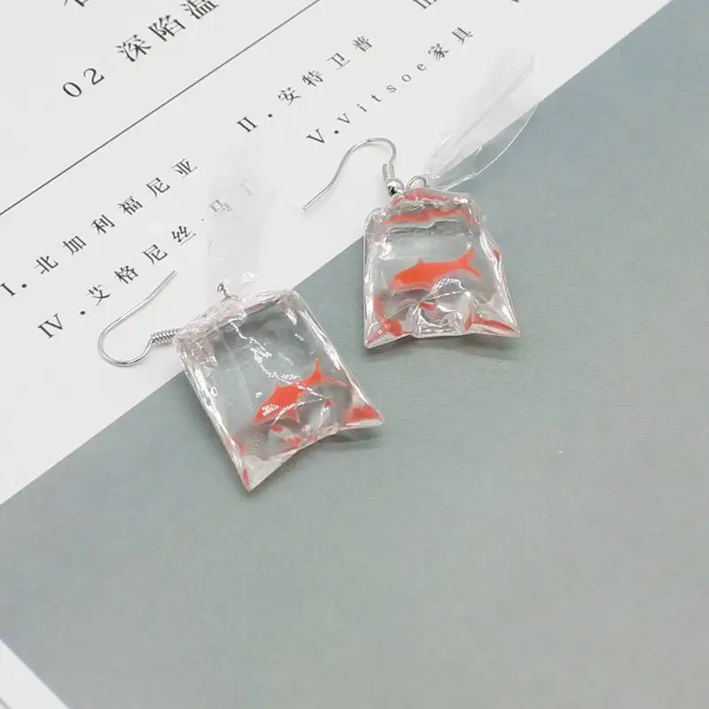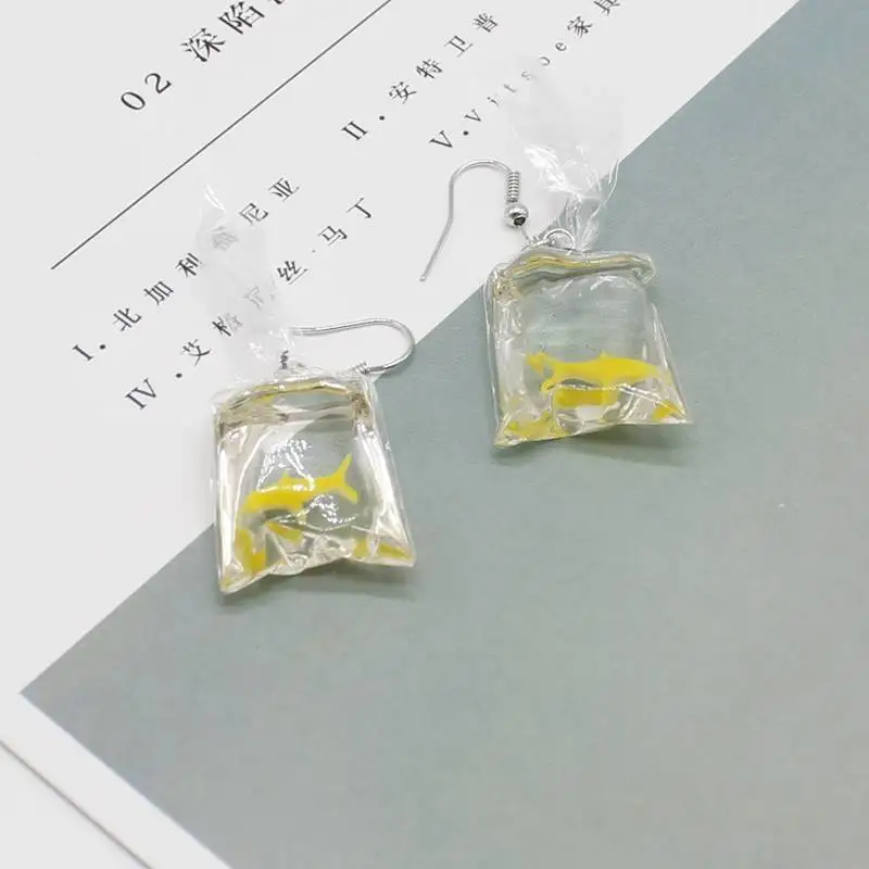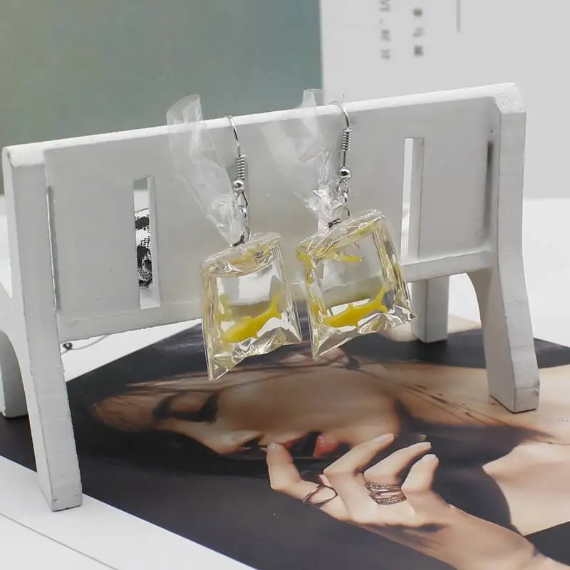 Креативные забавные серьги золотые рыбки, прозрачные серьги в форме сумки, новые серьги-Крючки для девочек