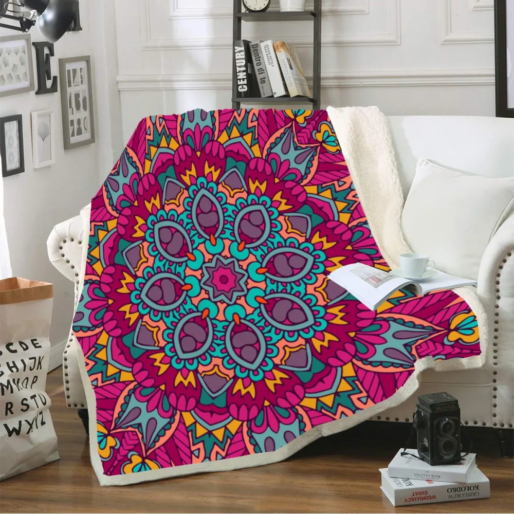 Boho одеяло из мягкого флиса шерпа одеяло 3D цветочные узоры печати в этническом стиле чехлы для диванов зима лист для путешествий с начесом