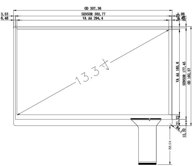 Один: общие параметры ЖК-панели: 1. Размеры 13,3 дюйма Тип a-Si TFT-ЖК-дисплей, ЖК-дисплей модуль 2. Разрешение 1920 (RGB) × 1080 3. Площадь дисплея 293,76 (горизонтальная) × 165,24 (вертикальная) мм 4. Внешний вид размер 299,96 (по Горизонтали) × 186,92 (по вертикали) × 2,2 мм (толщина) 5. Открытая площадь-поверхность обработки зеркала (Дымка 0%), твердое покрытие (3H) 6. Яркость дисплея 300 кд/м2 (Typ.) Контрастность 800:1 (Typ.) (передача) 7. Угол обзора 85/85/85/85 (Typ.) (CR≥ 10) влево/вправо/вверх/вниз 8. Режим отображения AAS, всегда черный дисплей, трансмиссионный 9. Тип интерфейса 30 контактов eDP (2 полосы), терминал 10. Напряжение питания 3,3 Вольт постоянного тока (тип.) 11. Рабочая температура окружающей среды: 0 ~ 50 °C; Температура хранения: -20 ~ 60 °C Два: обычные параметры сенсорной панели: (10-точечный сенсорный USB интерфейс типа) 1. Правый угол; Неровный черный квадратный размер (встроенный) 2. Размер конструкции: 302.77mmx177.45 мм 3. Размер сенсорной области: 294.4mmx165.6 мм 4. Длина сенсорного кабеля: 88,04 мм 5. Поддержка linux Windows 7 8 10 и Android system plug and play (Android kernel 3,1 system 5,1 или выше; linux kernel 3,5 или выше) Три: материнская плата с диском дисплея, общие параметры (основной чип RTD2550): 1. Физическое разрешение 1920X1080 дисплей «точка-точка» 2. Длина * ширина * толщина: 82*60*1,2 м 3. Вход HDMI (2) HDMI (T.M.D.S) цифровые сигналы 4. Интерфейс выходной панели 0,5 мм шаг 30pin флип-флоп FFC разъем 5. Выход наушников поддерживает горизонтальную розетку 6. Входная мощность 5 вusb вход, 12 В DC вход, Двойной вход питания (также может быть один вход питания) 7. Привод экран напряжение 3,3 V 8. Материнская плата в режиме ожидания потребеление энергии <0,3 W 9. Меню OSD (яркость, контрастность, автокоррекция, фаза, часы, положение линии, настройки функций, сброс и т. д.) 10.OSD язык китайский, английский и т. Д. 12. Нажмите кнопку питания/ввода/меню/вверх/вниз 5