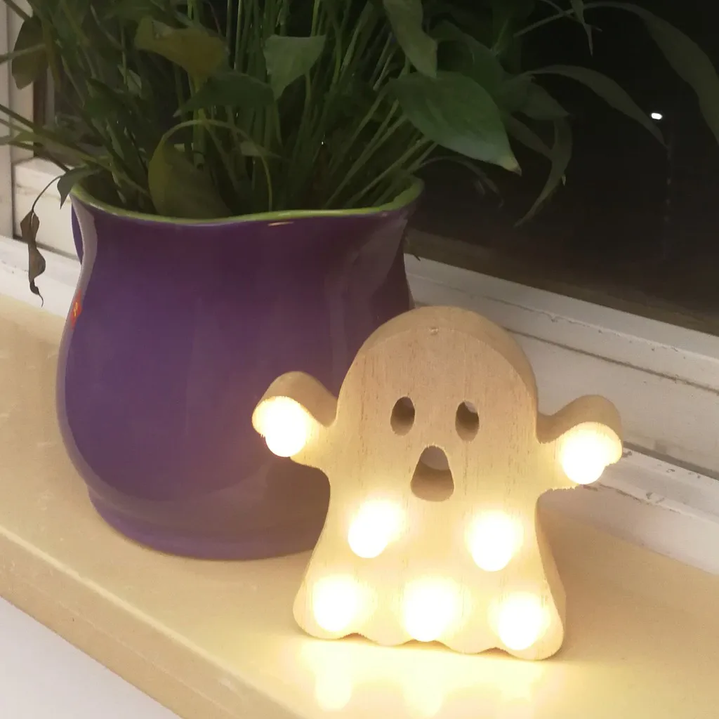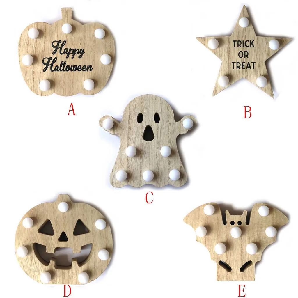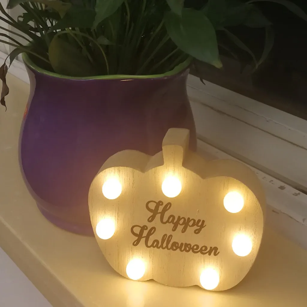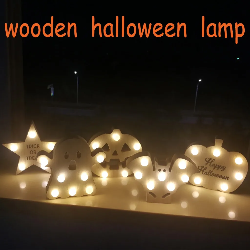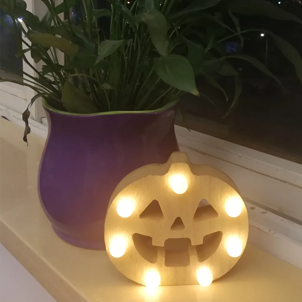 Костюмы на Хэллоуин Деревянные тыквы череп светильник светодиодный ночной Светильник s Висит вечерние домашний декор