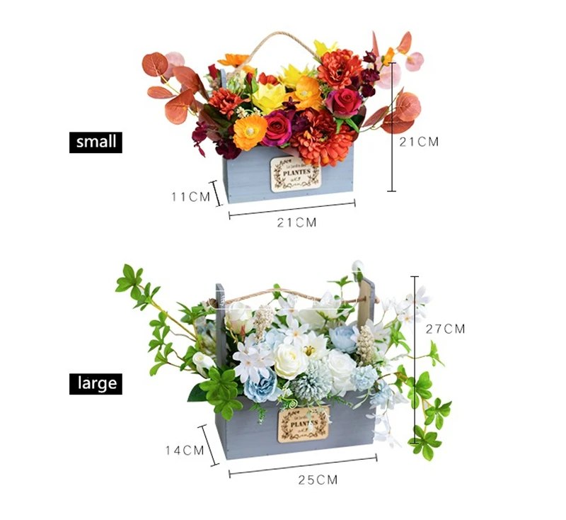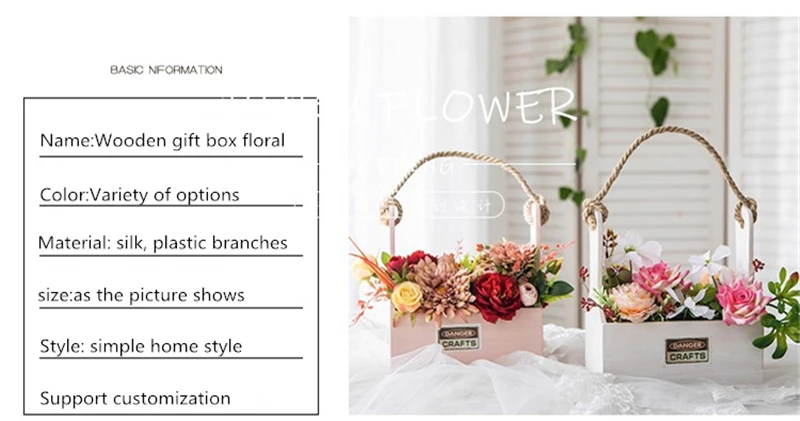 Характеристика: Название: деревянная коробка с цветами Материал: шелк, пластик Цвет: белый, серый, розовый. Размер: Большой: 27*25*14 см, Маленький: 21*21*11 см. Как показано ниже. Если вам нужны другие размеры и цвета, пожалуйста, свяжитесь со службой поддержки клиентов перед покупкой. 1. Пожалуйста, внимательно прочитайте Размер товара на странице с подробностями.