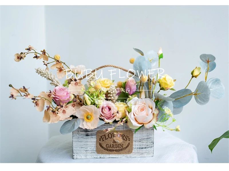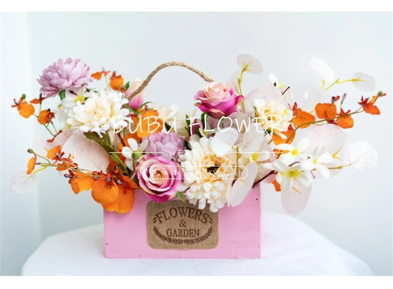 Искусственные цветы Свадебные реквизиты из дерева коробка Цветочная композиция Цветочная Свадебная церемония стол Добро пожаловать площадь украшения