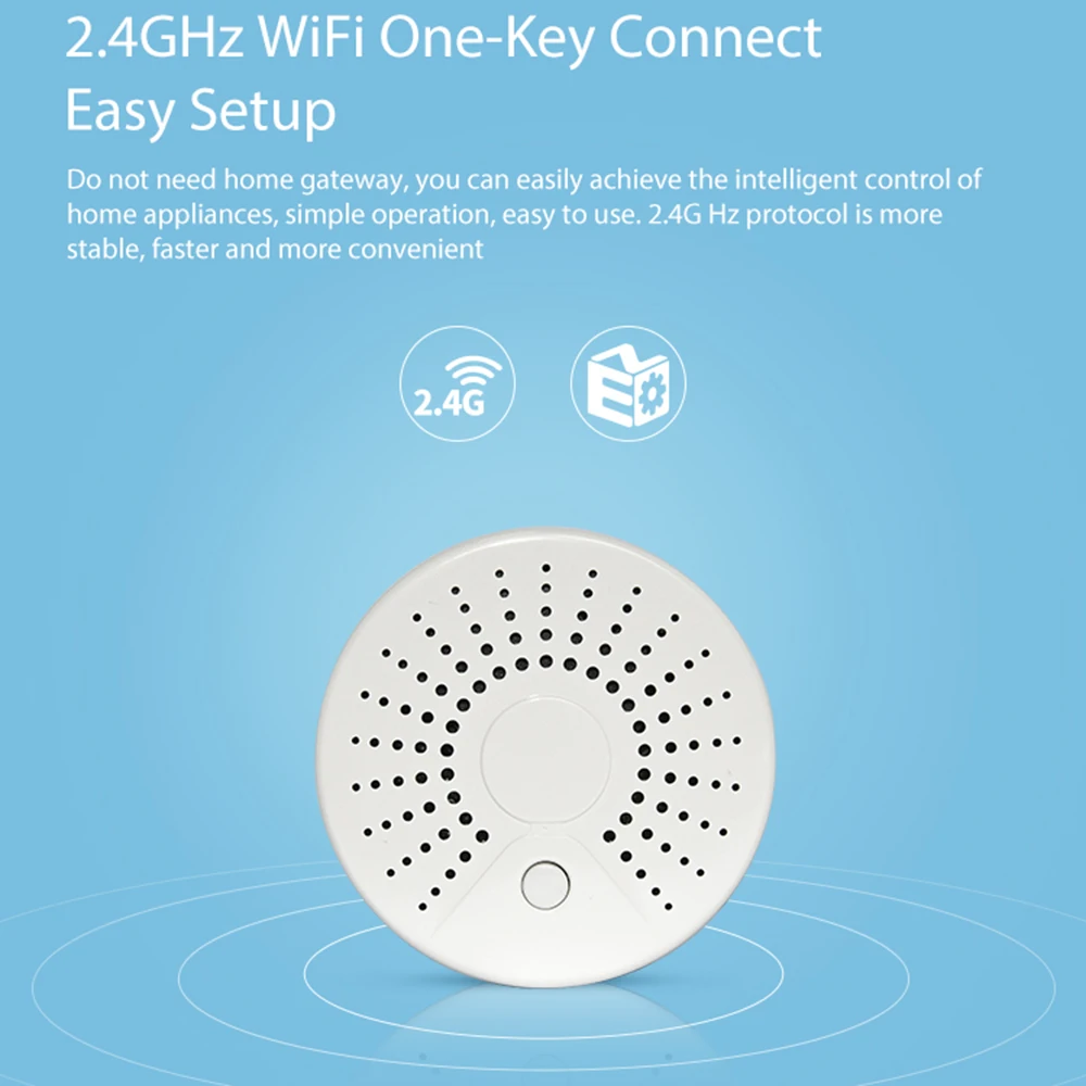 Простота в использовании: Этот smokes ensor поддерживает управление несколькими устройствами, такими как smart life Tuya Smart APP, наслаждайтесь вашим умным домом с устройствами WIFI smart home. Не нужен домашний шлюз, вы можете легко достичь интеллектуального управления бытовой техникой.