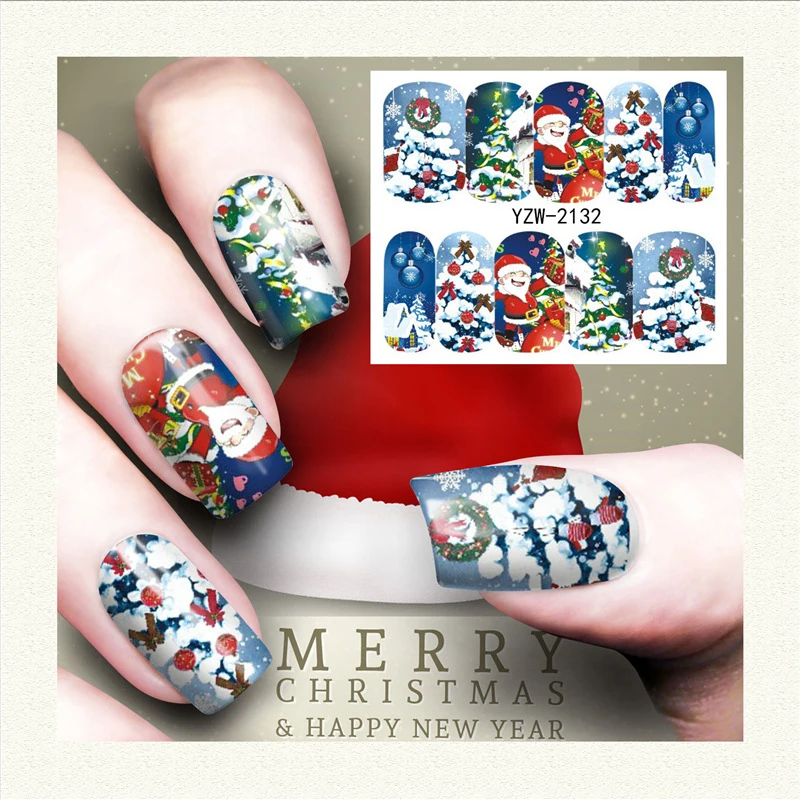 Хит продаж 2019, 1 лист, лучший Рождественский дизайн, наклейки для дизайна ногтей, клей, инструмент для маникюра, очень праздничный на Рождество