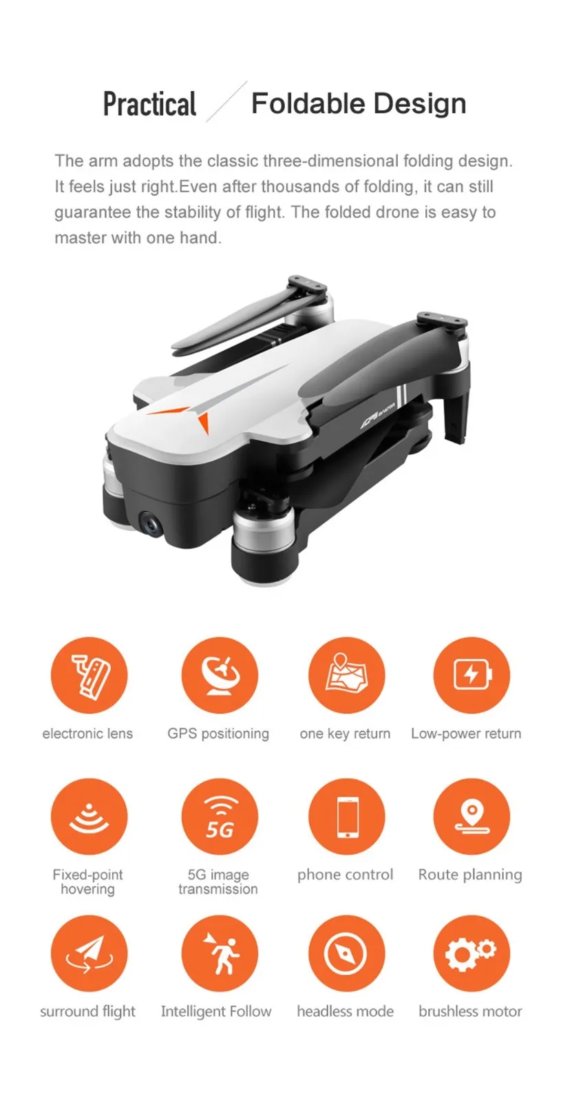 GPS возвращается в точку отвода с низкой мощностью и без сигнала.GPS умный следующее: 1. После того, как самолет свяжется с GPS, он открывает следующую функцию приложения, и самолет следует за мобильный телефон. 2. Следующее изображение: распознает объект съемки и автоматически Следуйте за полетом.Система съемки: самостабилизация и защита от тряски, графика высокой четкости 4k, угол объектива с дистанционным управлением 90 °, широкоугольная камера 120 °, 5g передача изображения высокой четкостиLEvel 7 сопротивление ветра, более стабильная поддержка аэрофотосъемки на мореМноготочечное планирование полета: самолет автономно летает в соответствии с предварительно установленным маршрутом, игрок концентрируется на съемке.Окружность с фиксированной точкой: Найдите центр окружности, а затем перемещайте желаемый радиус окружности через рокер.Отслеживайте и запоминайте Дрон: нажмите на значок gps-сигнала три раза, откройте интерфейс карты, карта показывает конечное расстояние самолета, долготу и широту положения ..Функция: складной, запуск одной кнопкой, посадка одной кнопкой, удержание высоты, постоянная оптическая подача, двойная камера, подключение Wi-Fi, управление приложением, режим следования мной, полет в точку, контроль скорости, передача в режиме реального времени, GPS возврат домой.Посылка включает в себя: