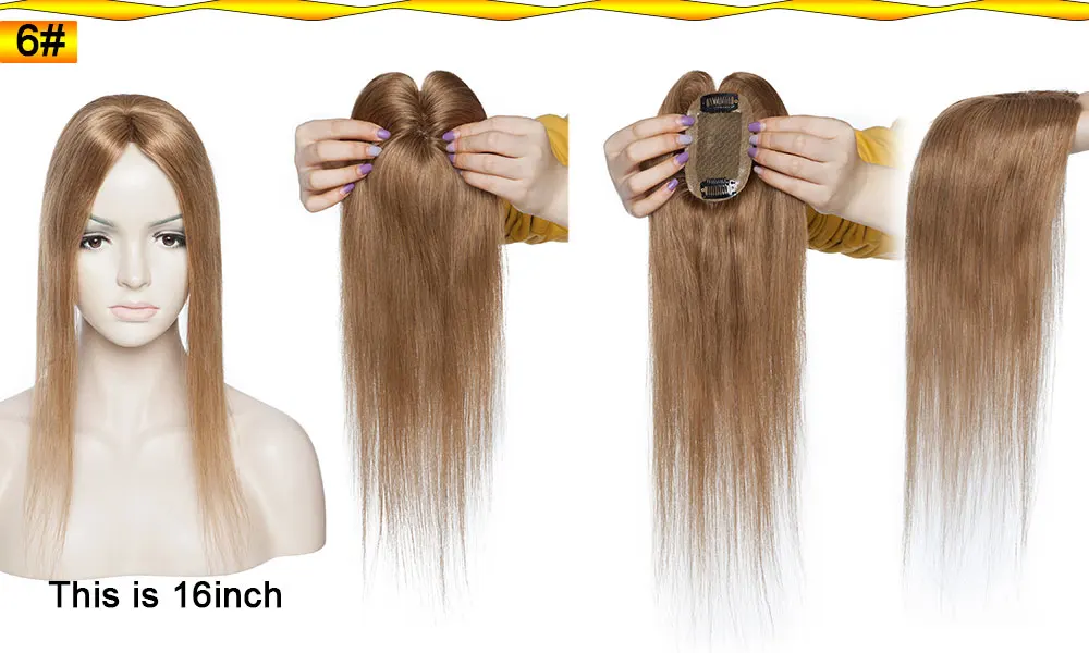 Базовый размер:6 см x 9 см Тип основания:Шелковая основа Шелковая основа Более профессиональный, имеет три слоя базовые Композиции: бионическая сетка для кожи головы, дышащий светильник, Шелковая шкура, все завязываются вручную 100%. Текстура волос:Прямой Материал волос:100% индийские человеческие волосы, без смешанных волос животных, без подделок Особенности волос: Супер шелковистая и супер мягкая, невидимая, идеально сочетается с вашими волосами, удобная, естественная Концы: Может быть свернут/выпрямлен/нагревается/окрашен/изменен.Дополнительные цвета: