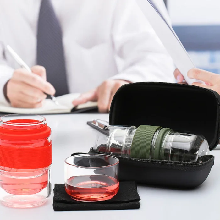 Новый дорожный чайный сервиз Кунг-фу чайный горшок с портативным чехлом стеклянные чайные чашки с заваркой для путешествий домашняя доставка