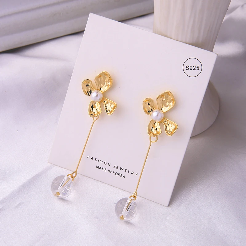 Модные новые женские серьги-капли ручной работы, стеклянные жемчужные длинные серьги с цветком, оптовая продажа, очаровательный свадебный подарок