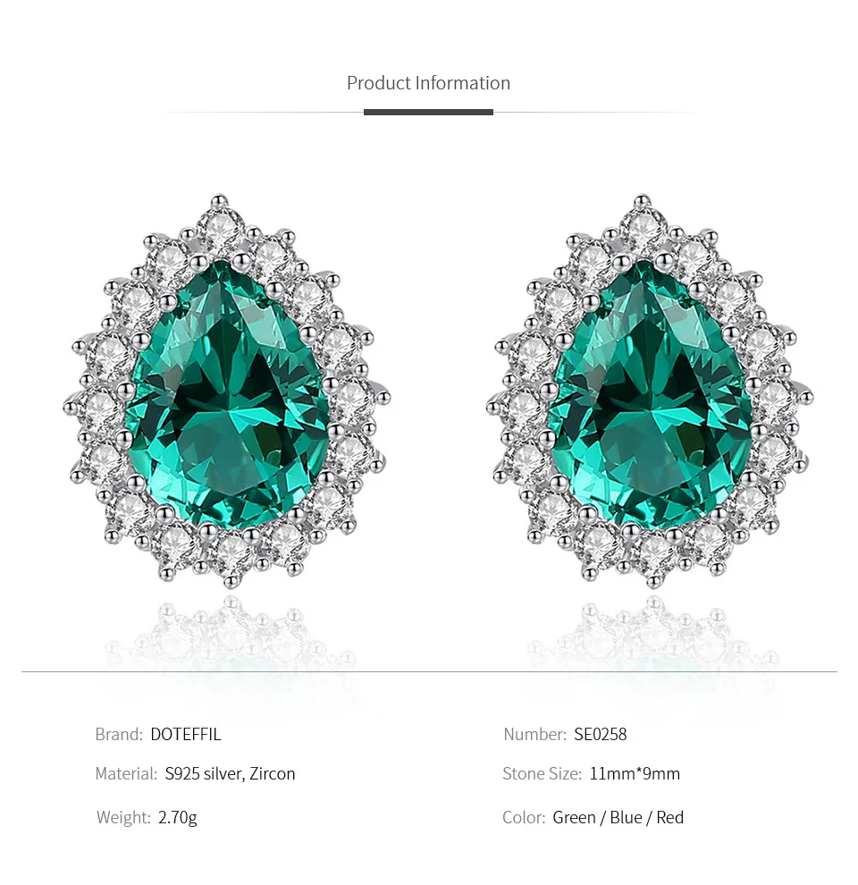 Бренд: DOTEFFIL Тип камня: 100% натуральный драгоценный камень Цвет циркония: синий/зеленый/красный Циркон блеск: AAAAA Поверхность циркония: без дефектов Размер циркония: 11 мм Длина: около 9 мм Вес: 2,70 г Материал металла: 100% 925 пробы Серебряный Металлический штамп: S925 Упаковка: Подарочная сумка Они модные и элегантные, подходят для ношения круглый год Вы можете носить его на свадьбу/вечерние/помолвки/юбилей Роскошная блестящая ручная работа/высокое качество