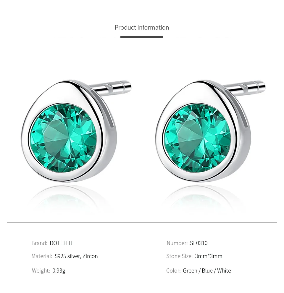 Бренд: DOTEFFIL Тип камня: 100% натуральный драгоценный камень Цвет циркония: зеленый/синий/белый Циркон блеск: AAAAA Поверхность циркония: без дефектов Размер циркония: 3 мм Длина: Около 3 мм Вес: 0,93 г Материал металла: 100% 925 пробы Серебряный Металлический штамп: S925 Упаковка: Подарочная сумка Они модные и элегантные, подходят для ношения круглый год Вы можете носить его на свадьбу/вечерние/помолвки/юбилей Роскошная блестящая ручная работа/высокое качество