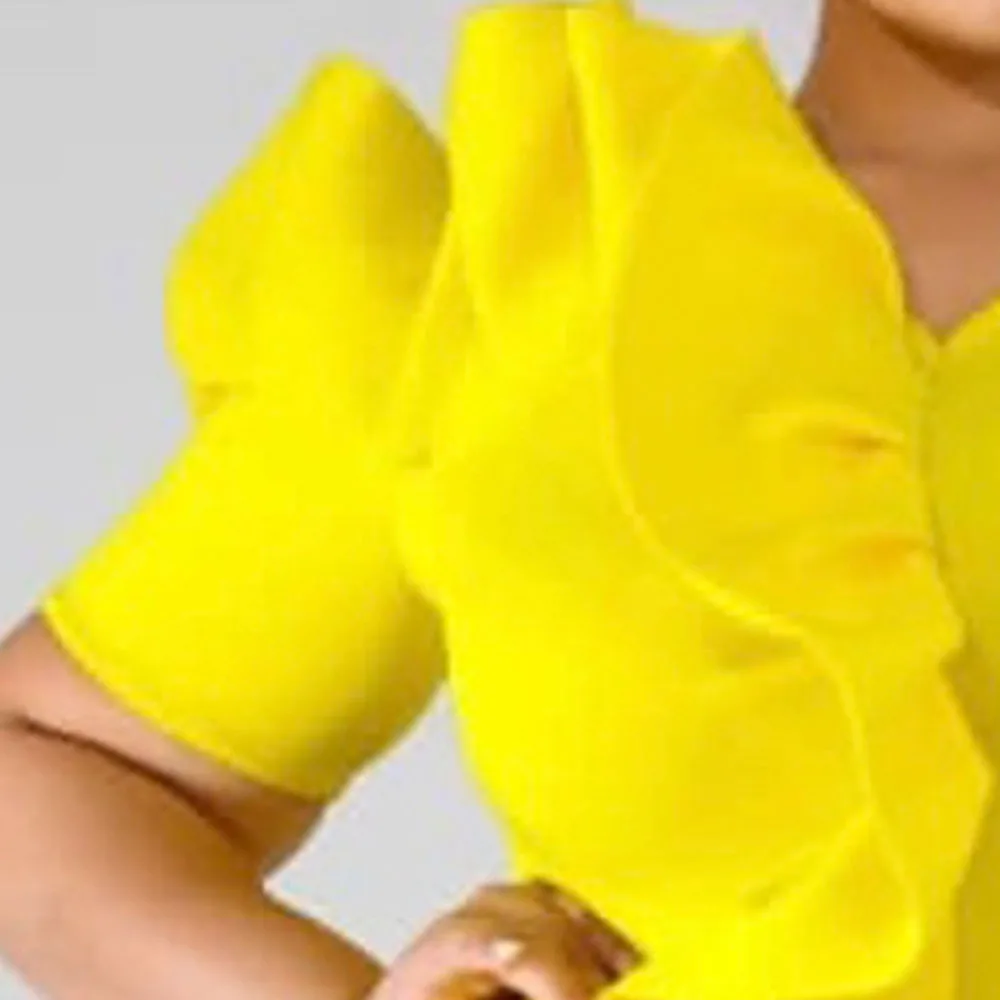 Желтая Асимметричная блузка для женщин, рубашки 2020, тонкие оборки с коротким рукавом, женские офисные Блузы с оборками и воротником-стойкой