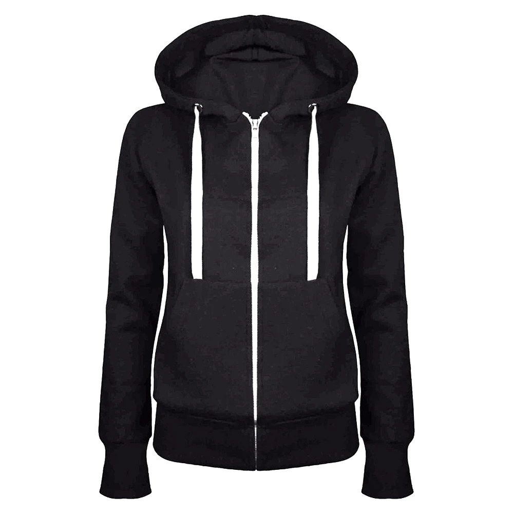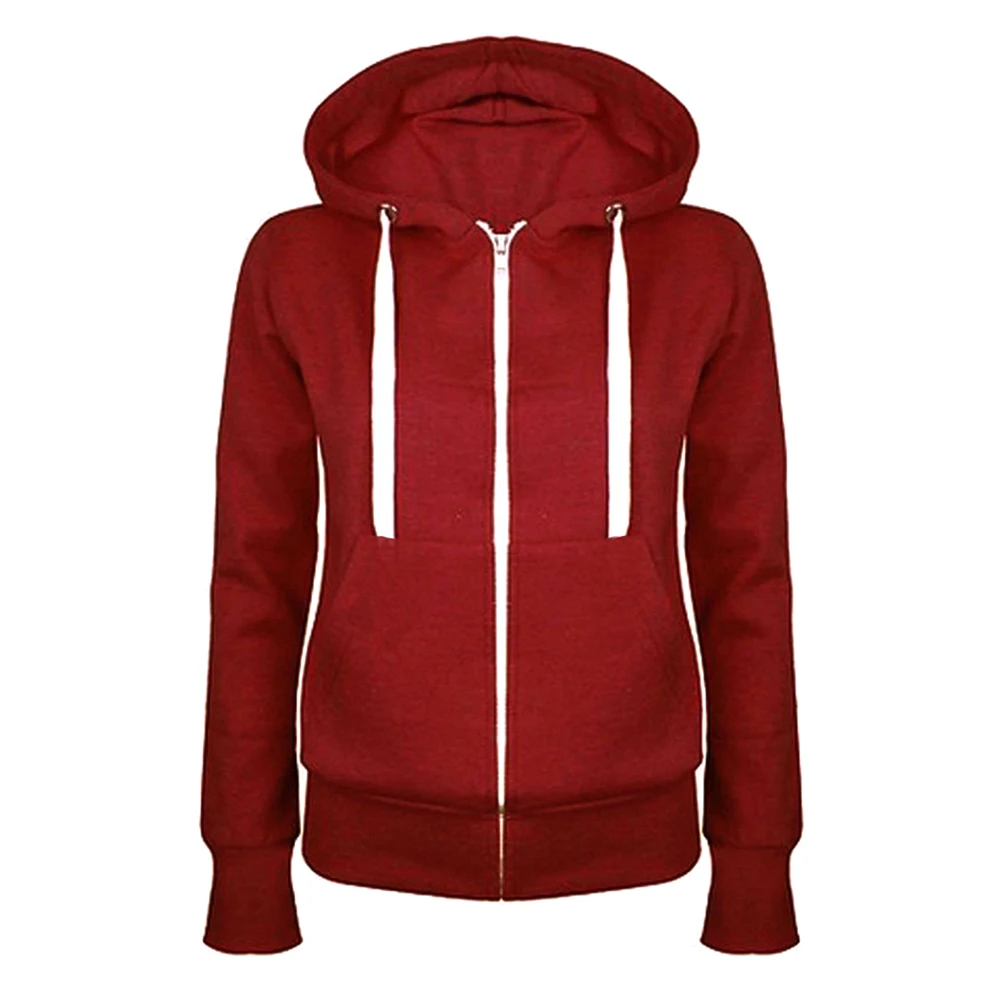 Женская толстовка с капюшоном, Повседневная однотонная Толстовка с длинным рукавом, зимняя теплая толстовка с капюшоном, Женская толстовка на молнии, пальто черного, синего, красного, серого цветов
