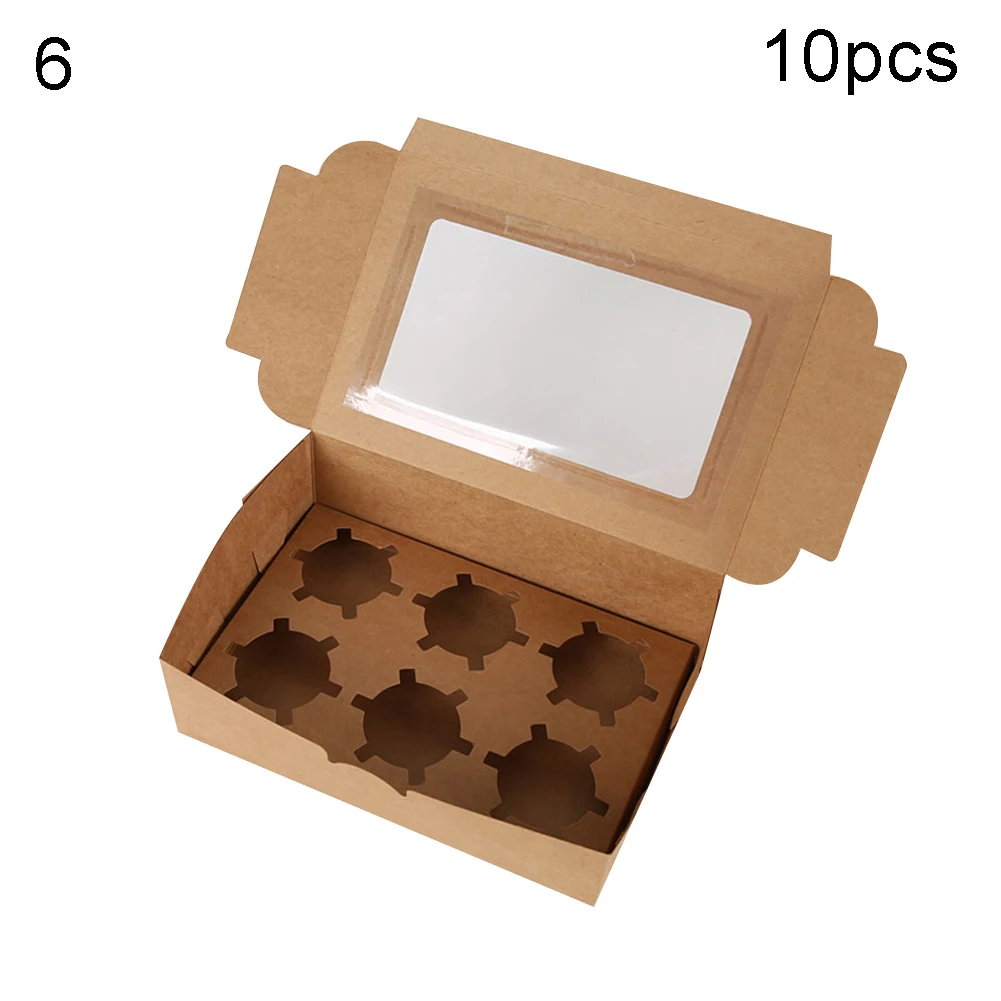 10 шт Крафт бумажная коробочка для капкейка хлебобулочная контейнер для тортов с вставкой витрины