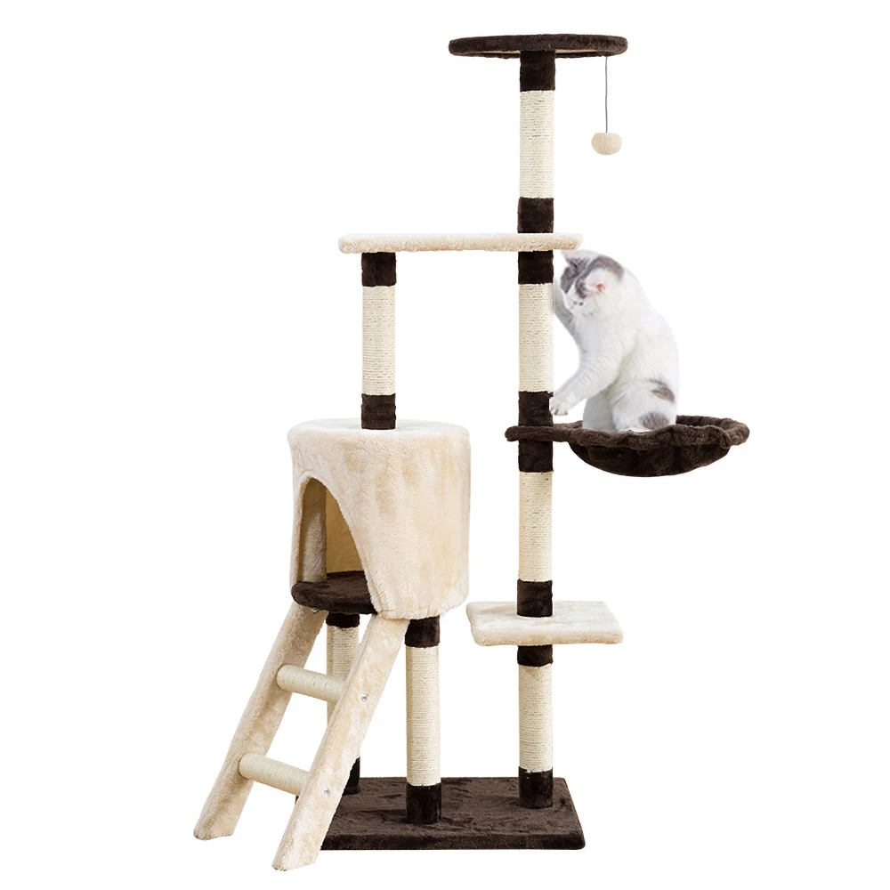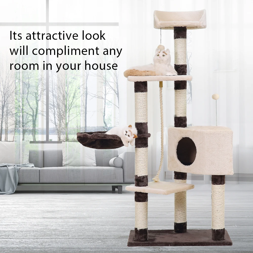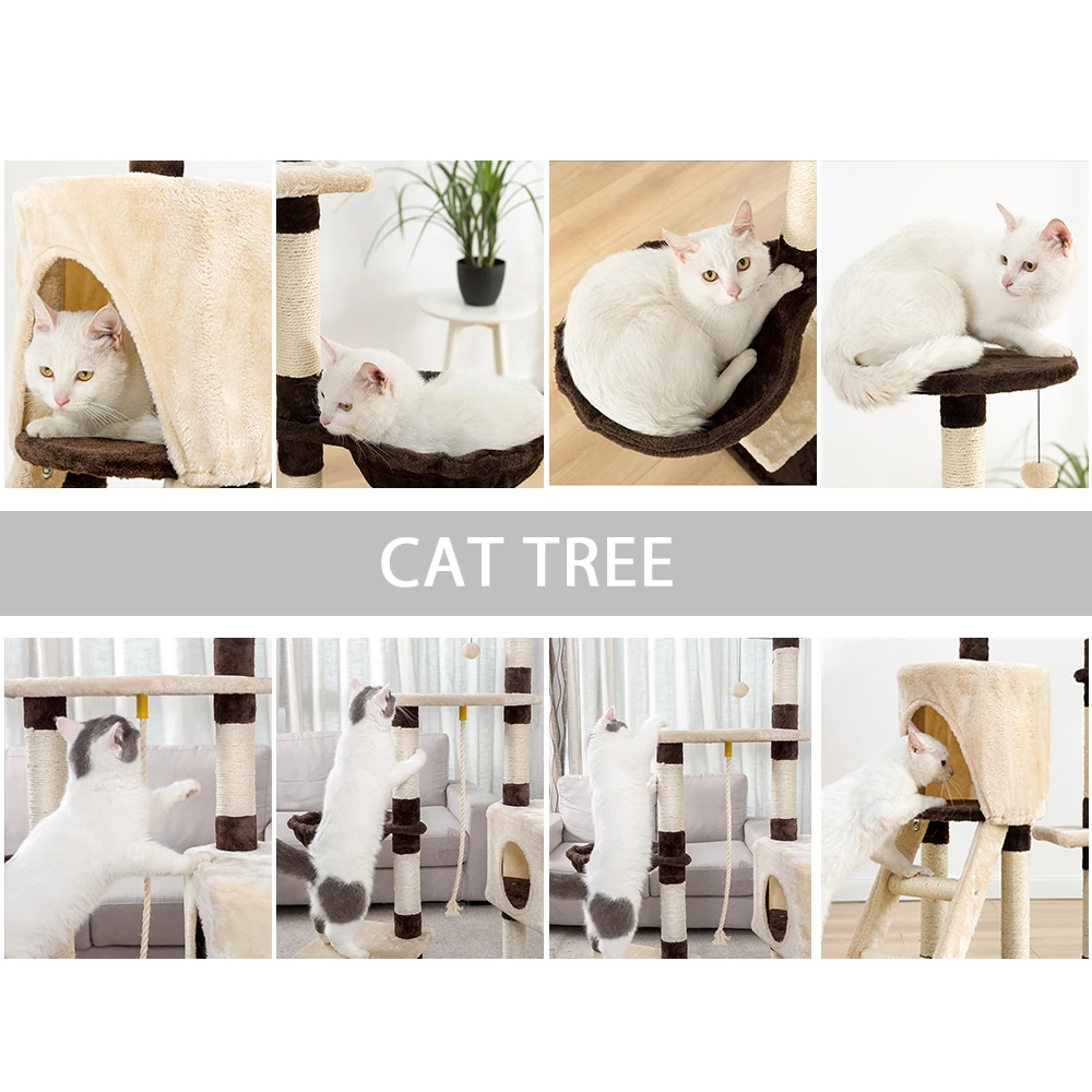Сверхпрочная конструкция, сбалансированный дизайн, прочная основа, кошки могут легко и безопасно прыгать на это кошачье дерево или соскальзывать с него.