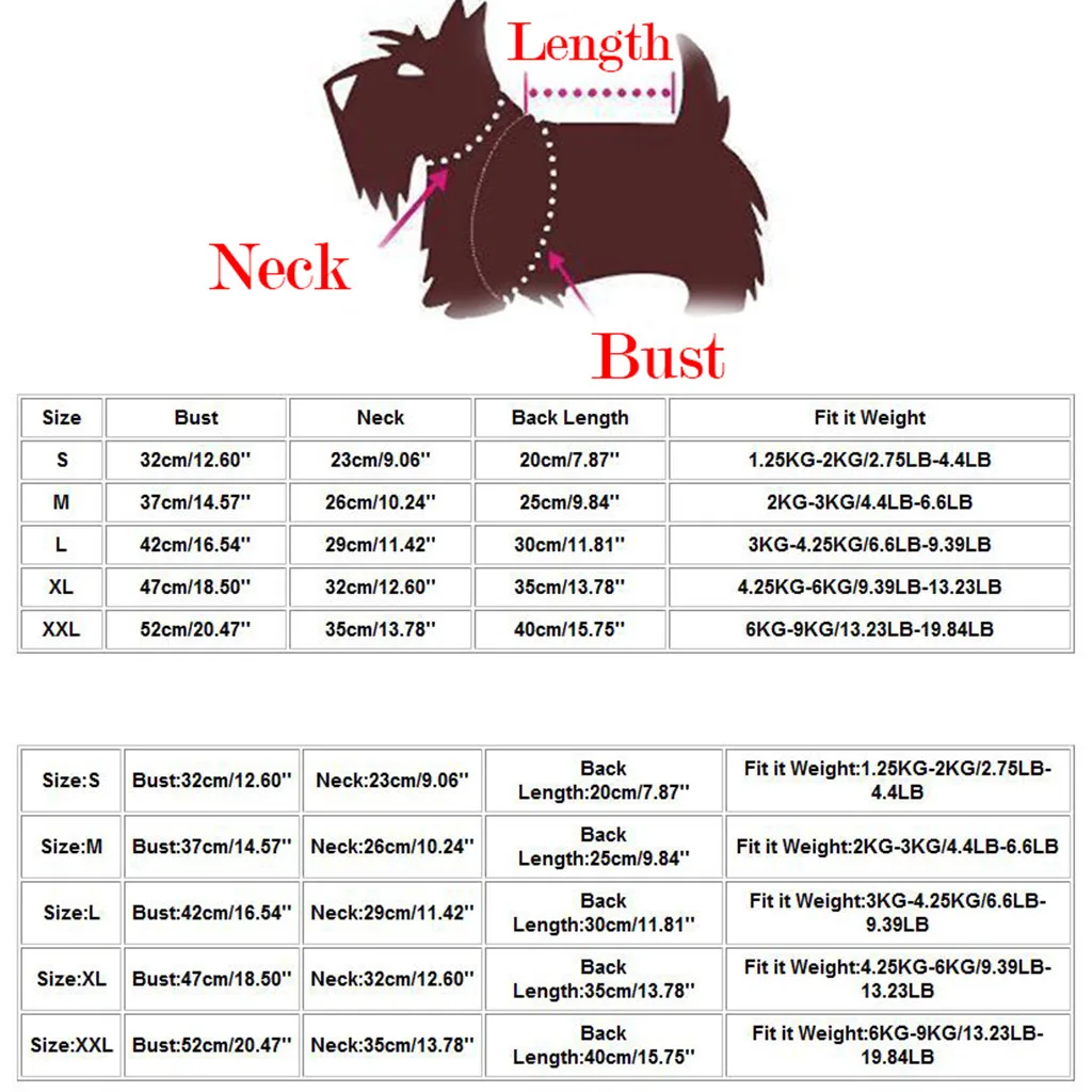 Размер Обхват груди Шеи Задняя Длина К нему Вес S 32 см/12,60'' 23 см/9,06'' 20 см/7,87'' 1,25 кг-кг/2 кг/2.75LB-4.4LB М 37 см/14,57'' 26 см/10,24'' 25 см/9,84'' 2 кг-кг/3 кг/4.4LB-6.6LB L 42 см/16,54'' 29 см/11,42'' 30 см/11,81'' 3 кг-4,25 кг/6.6LB-9.39LB XL 47 см/18,50'' 32 см/12,60'' 35 см/13,78'' 4,25 кг-6 кг/9.39LB-13.23LB XXL 52 см/20,47'' 35 см/13,78'' 40 см/15,75'' 6 кг-9 кг/13.23LB-19.84LB