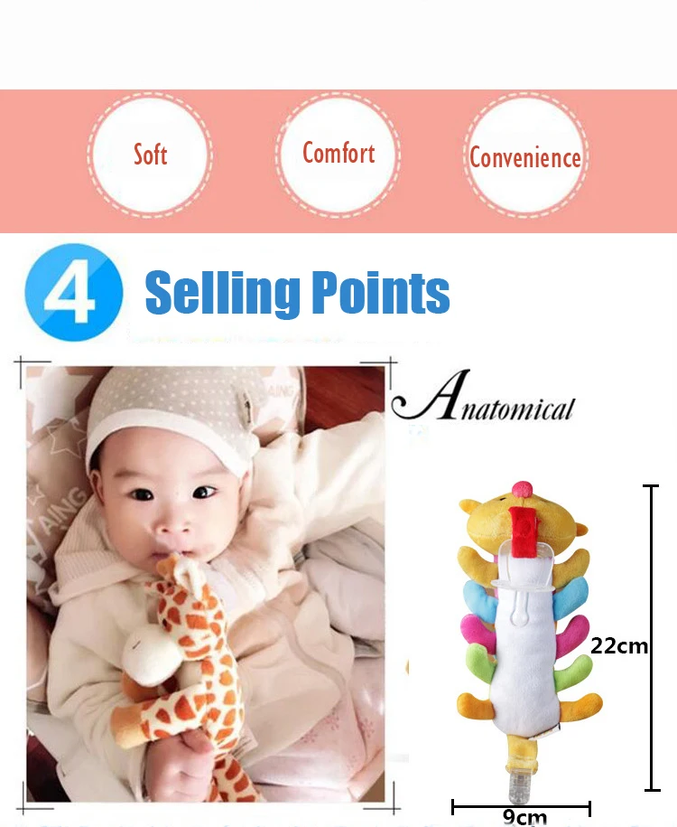 Лучший подарок для детского душа и Отличная экономия времени для родителей. Легко крепится к детской одежде, автомобильному сидению, коляске, переноске для малышей, слингу, нагруднику, лямкам, одеялу и т. д. Всегда держать его в пределах досягаемости и от пола, от падения и пачкаться и от опасных и нежелательных вирусов, бактерий или микробов.
