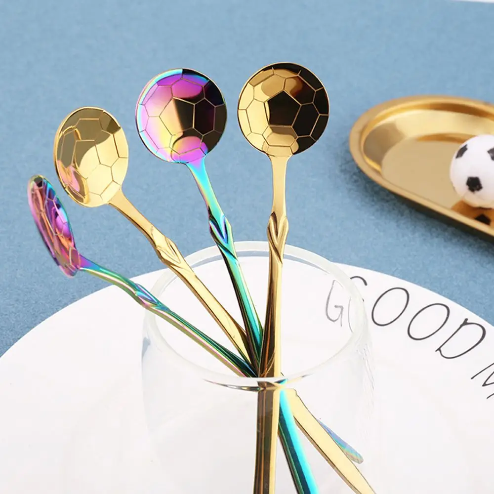 100% новая и высококачественная ложка для кофе и чая. Название: Футбол ложка Размеры: 15,4*2,8 см Цвет: серебристый, золотой, Радужный Материал: Нержавеющая сталь Особенности: Подходит для детей и подростков. Эта ложка изготовлена из нержавеющей стали, антикоррозийная, прочная Посылка включает в себя: 1 кофейная ложка Примечание: 1. Пожалуйста, учитывайте погрешность в 0-2 см из-за ручного измерения, пожалуйста, убедитесь, что вы не возражаете перед покупкой. 2. Из-за разницы между различными мониторами изображение может не отражать фактический цвет изделия.