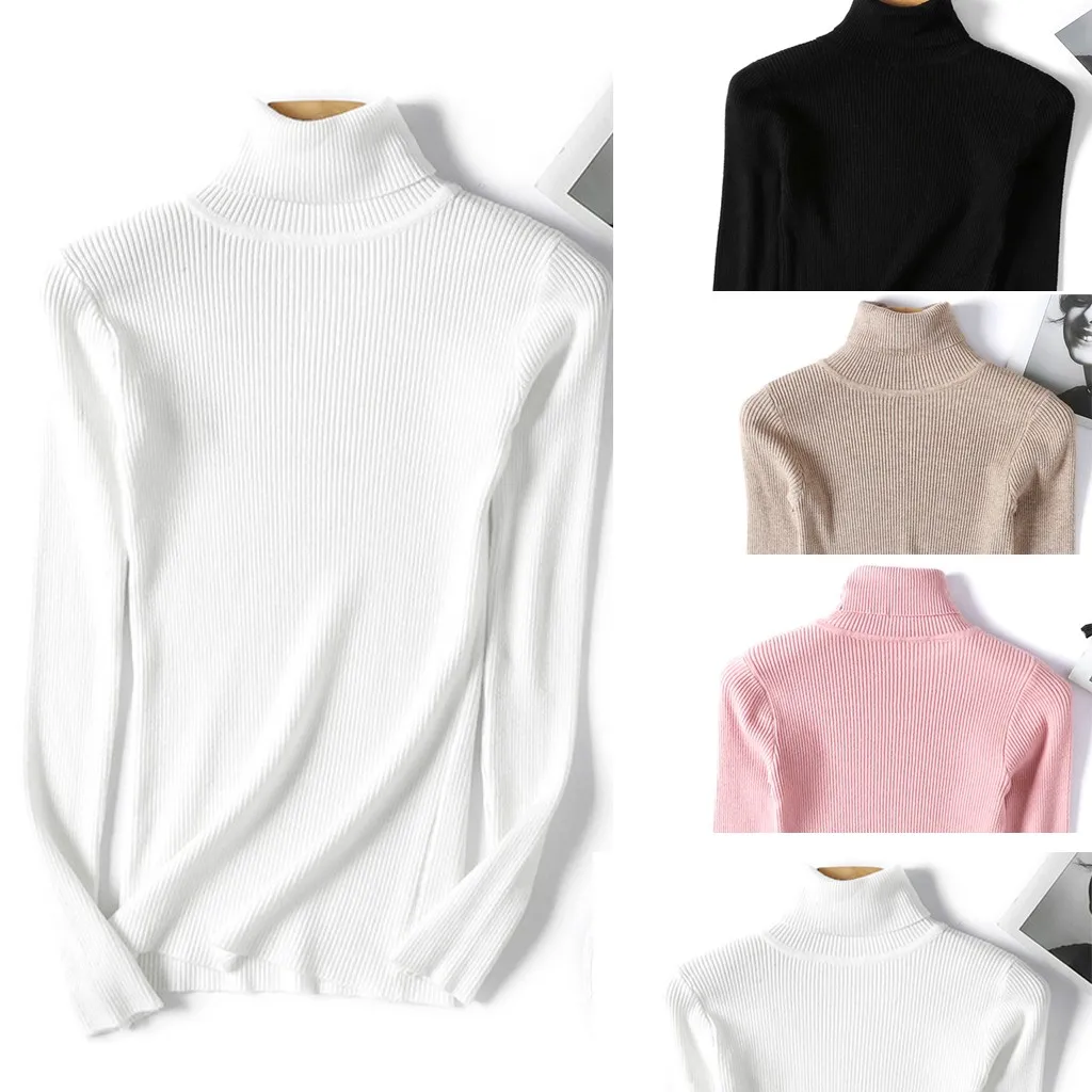 Женская мода зима водолазка с длинным рукавом облегающая блузка рубашка