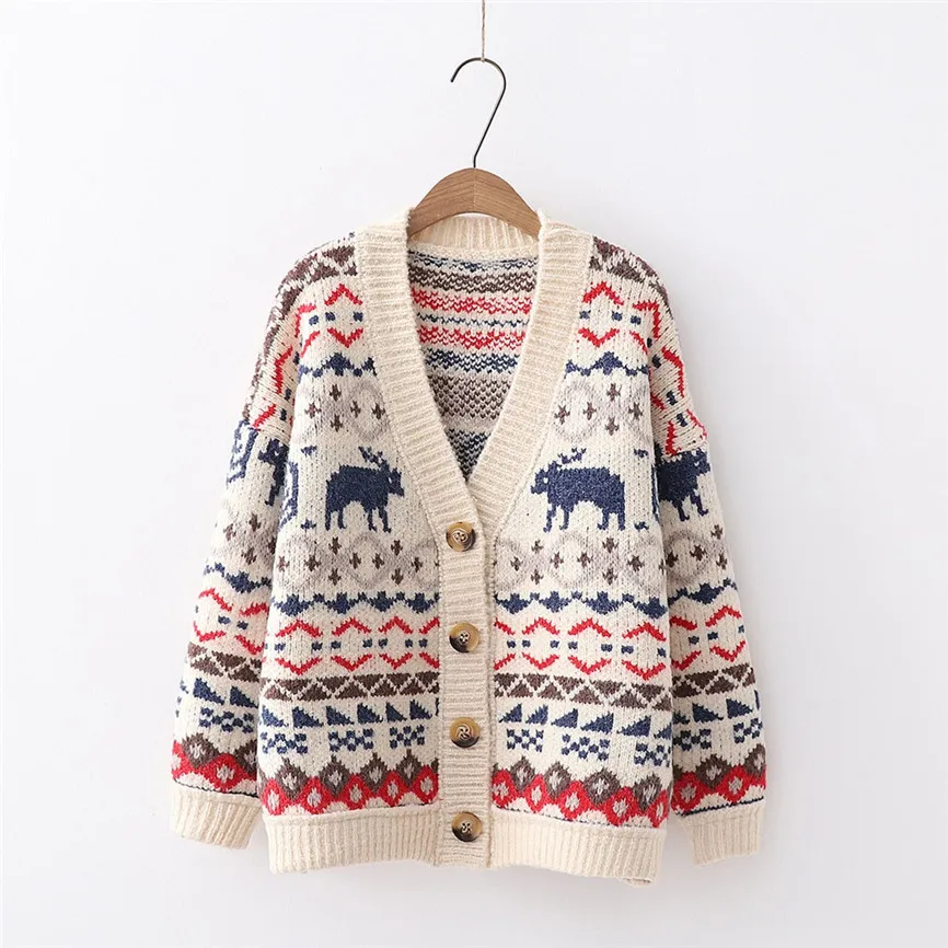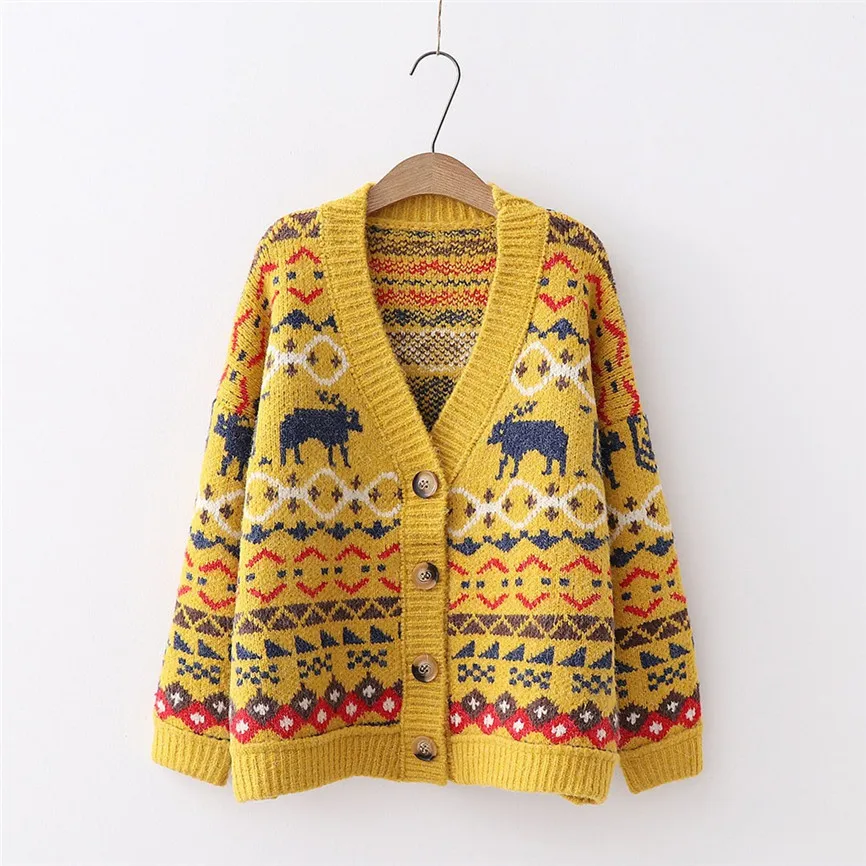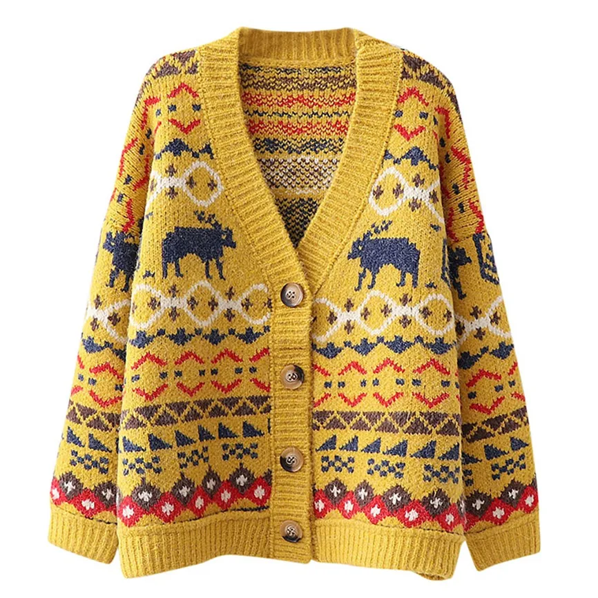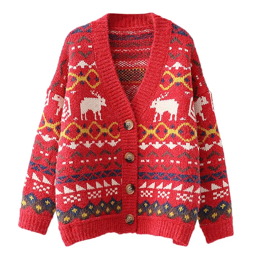 Рождественское Женское зимнее пальто с модным принтом и карманами на пуговицах, верхняя одежда с длинным рукавом, Свободное пальто для женщин размера плюс, одежда с длинным рукавом