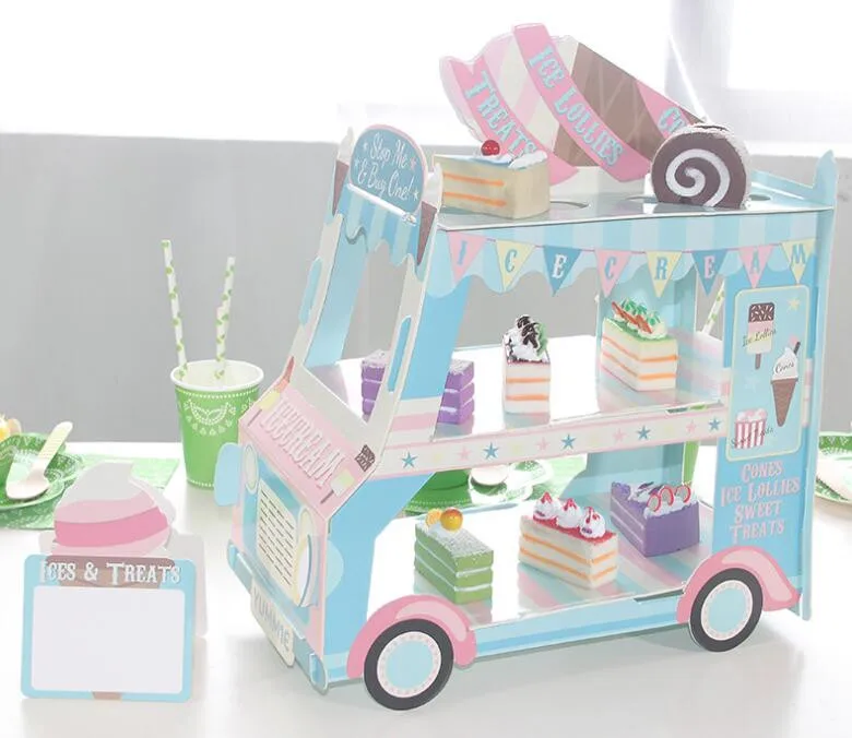 Бумага торт украшения автомобиля Форма торт фигурки жениха и невесты; Мороженое стойка-фургон автомобили Дисплей стенд кекс держатель для детей на день рождения украшения