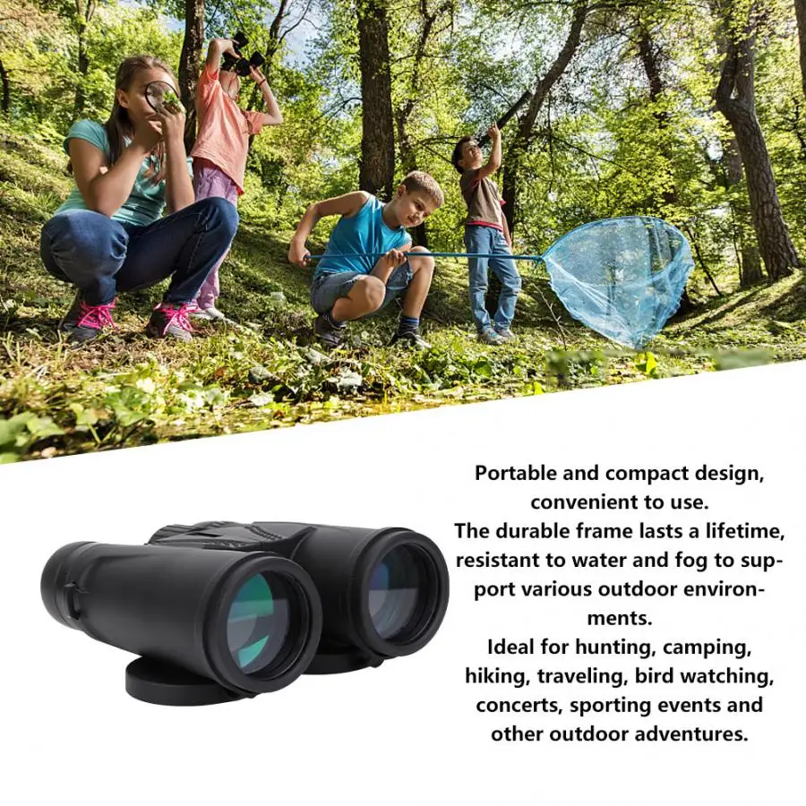 Этот компактный и легкий бинокль имеет 10x увеличение, что может обеспечить более яркое видение, идеально подходит для охоты на открытом воздухе, наблюдения за птицами, походов, спортивных мероприятий и других мероприятий.