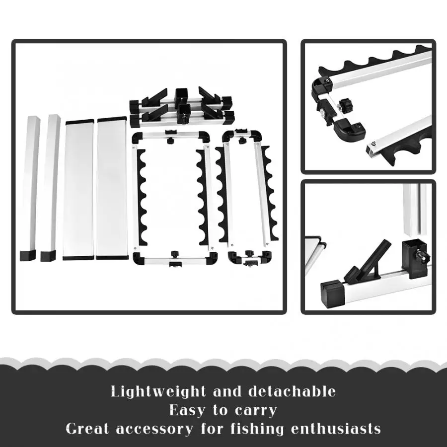 Этот держатель удочки изготовлен из квалифицированный алюминий сплава, прочная база обеспечивает хорошую стабильность для ваших драгоценных удочек. Инновационный и красивый, простая установка и эксплуатация. Двусторонняя конструкция, вмещает до 12 удочек. Держатель подходит для большинства удочек. Экономия пространства, хранение и организация удочек в отличном порядке. Легкий и съемный, легко носить с собой, отличный аксессуар для любителей рыбалки.