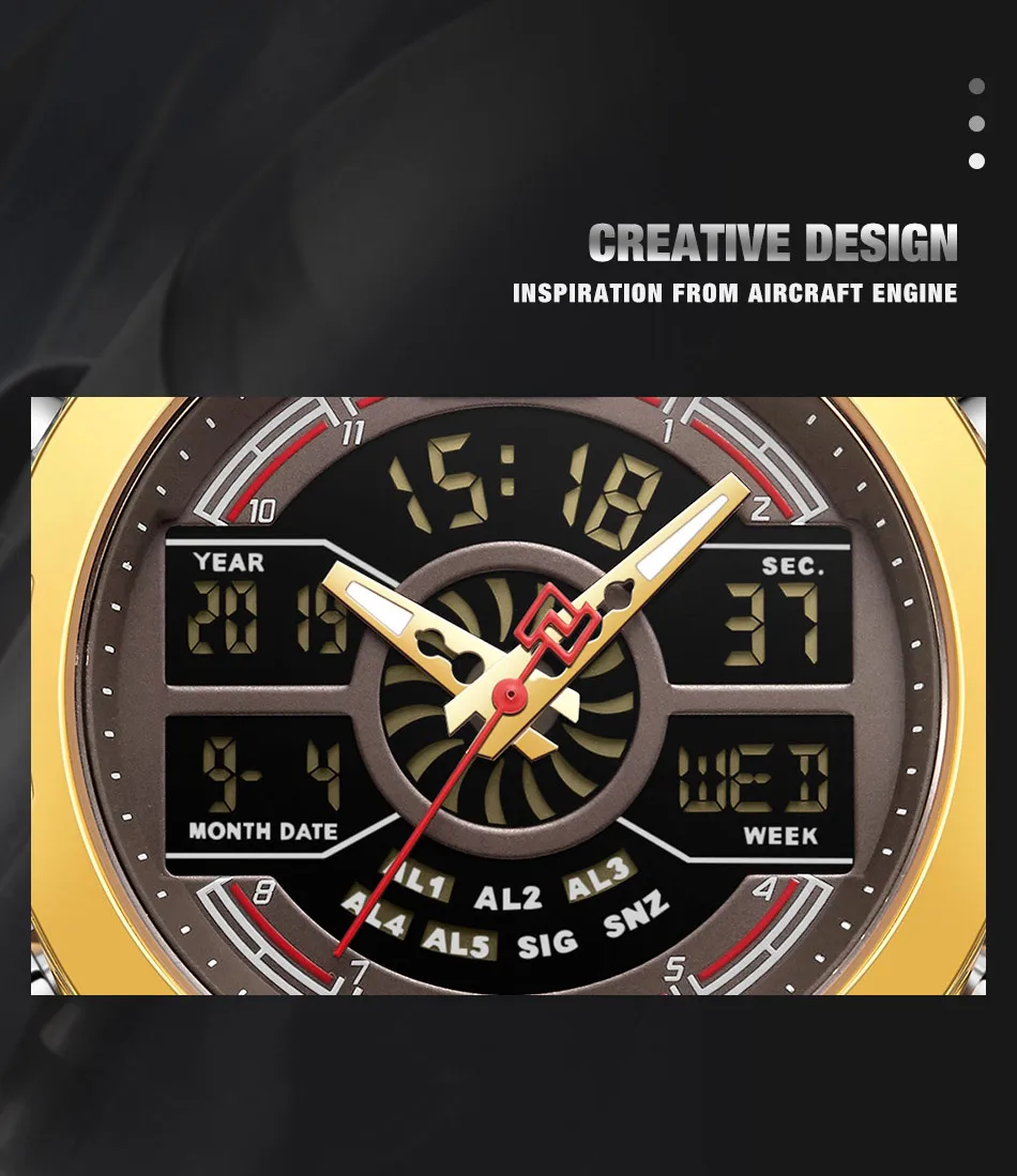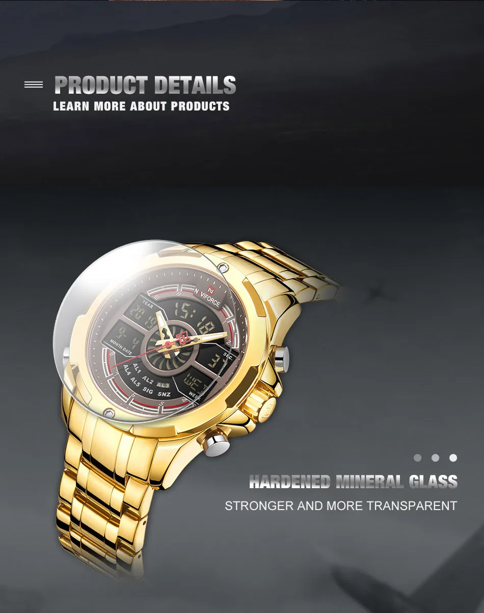 NAVIFORCE Лидирующий бренд, мужские часы с двойным дисплеем, мужские роскошные золотые кварцевые часы, мужские Модные аналоговые цифровые водонепроницаемые наручные часы