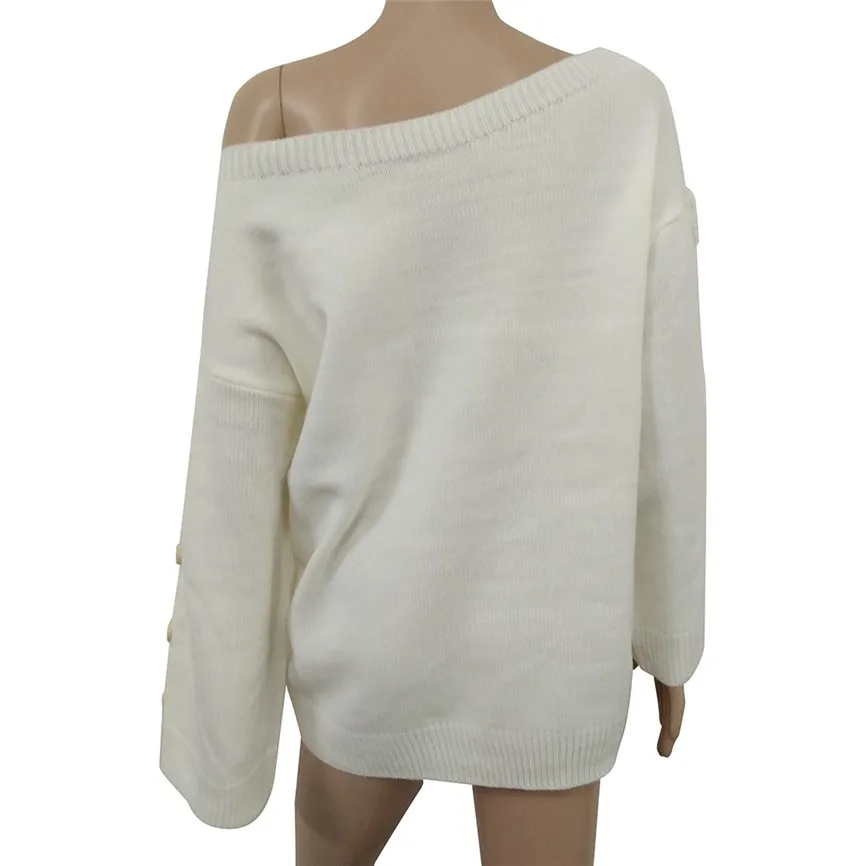 Женский свитер с открытым плечом и длинным рукавом