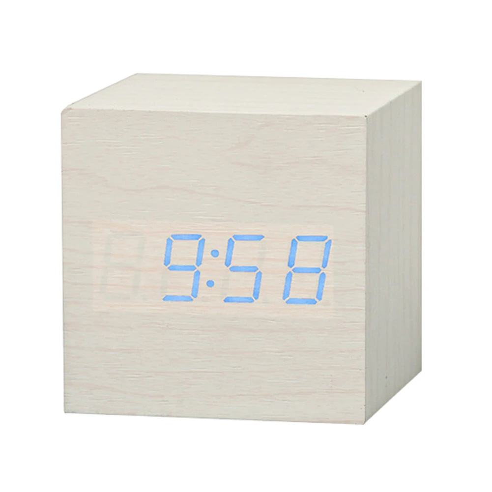 Деревянный квадратный цифровой светодиодный USB стол будильник стол Голосовое управление украшение