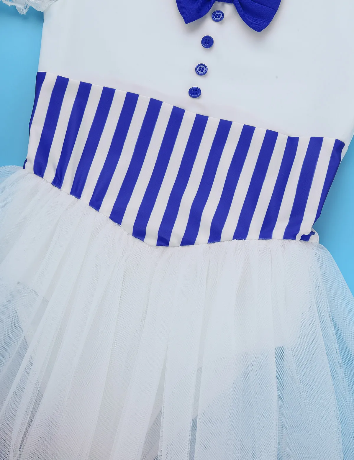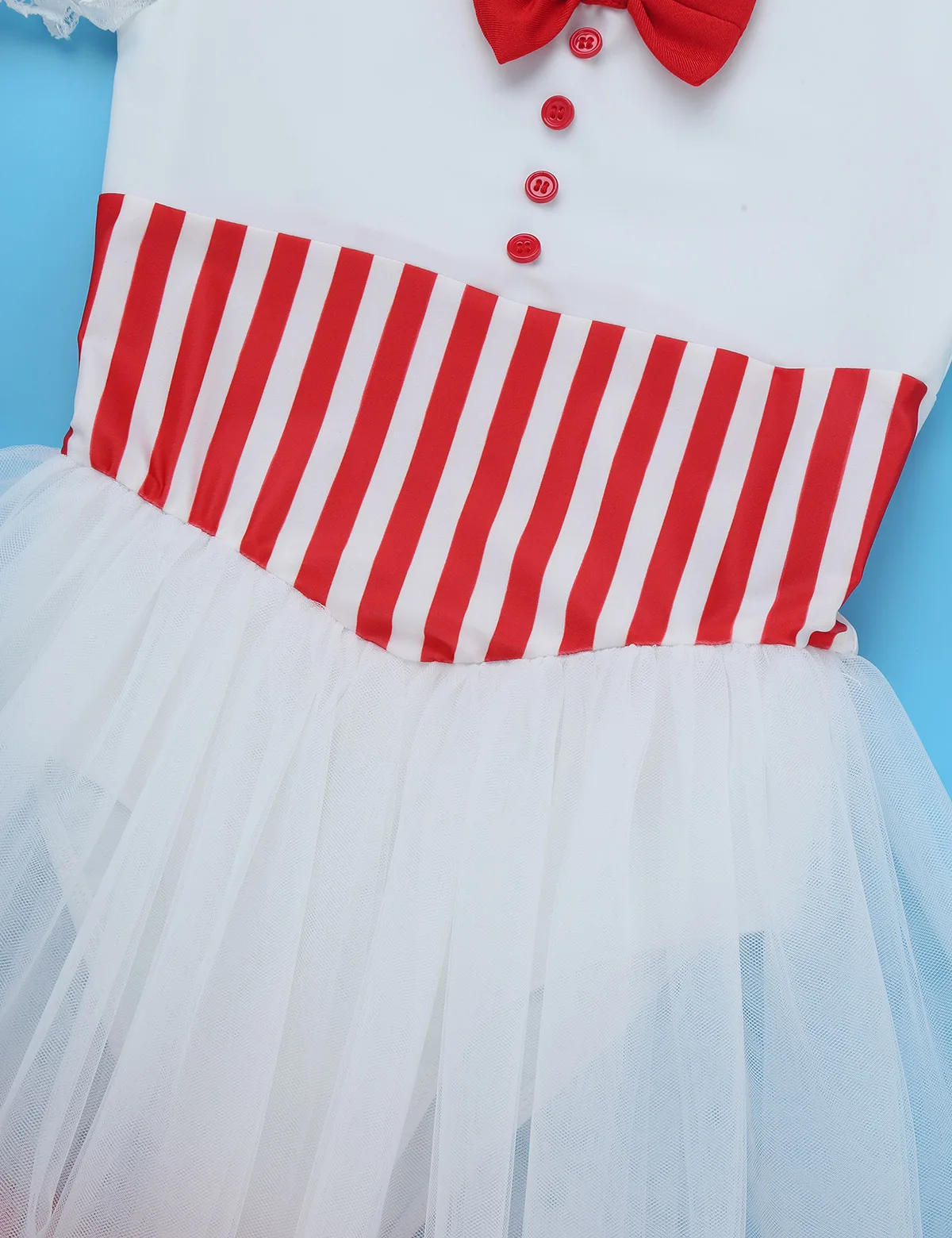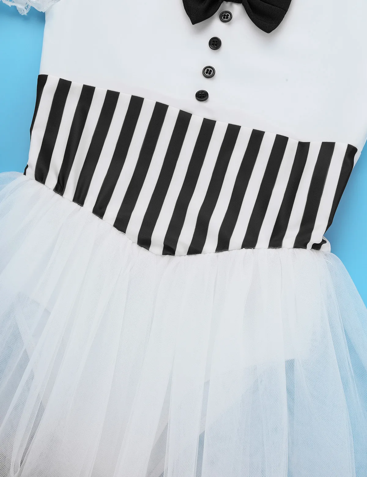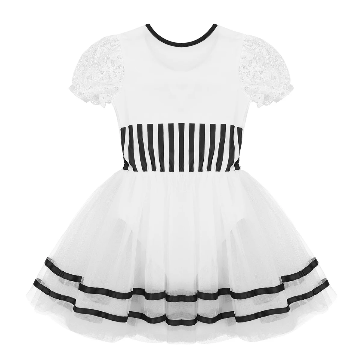 Короткие пышные кружевные рукава, круглый вырез с бантом, топ с лифом спереди с декоративными пуговицами. Полосатая Сумка на талии дизайн.