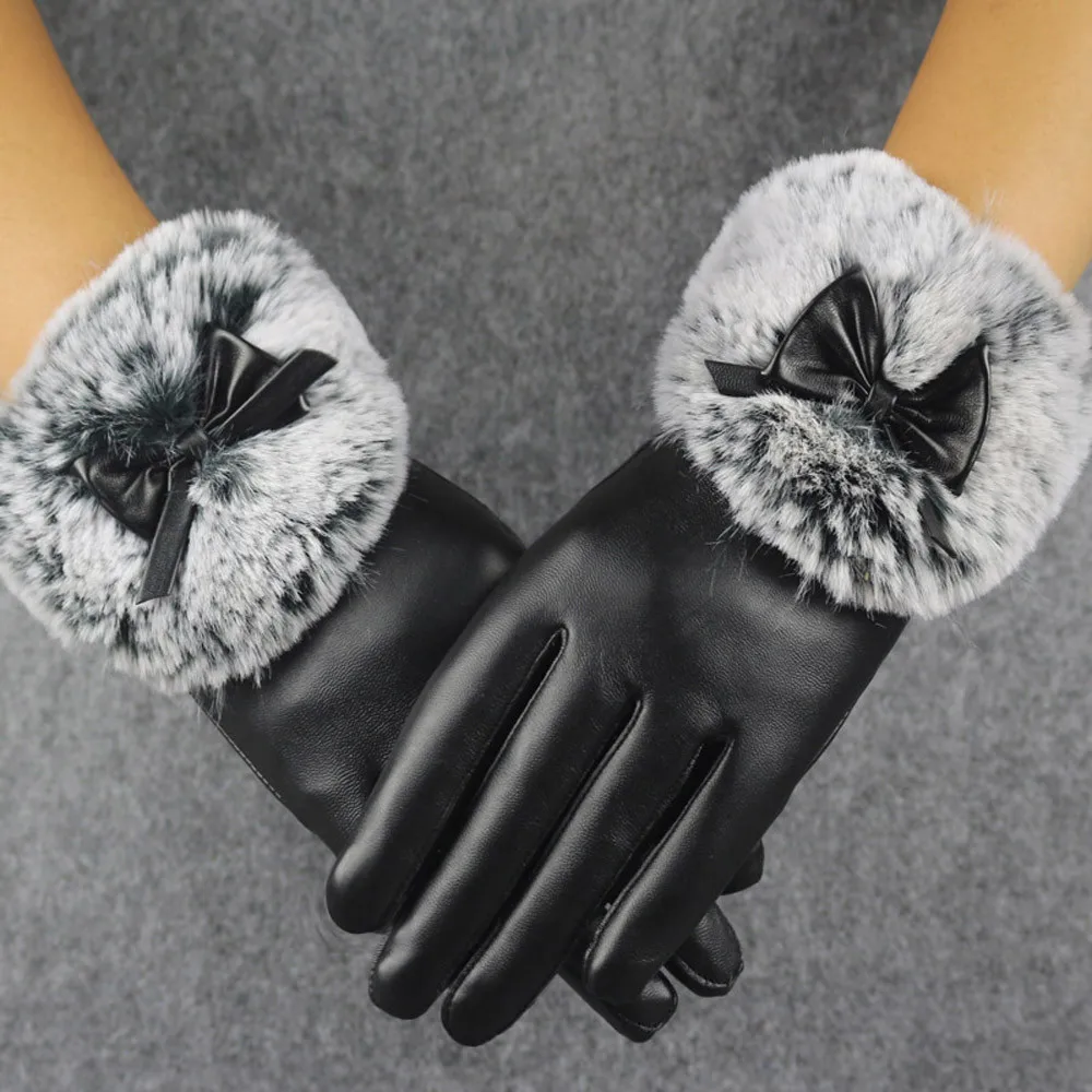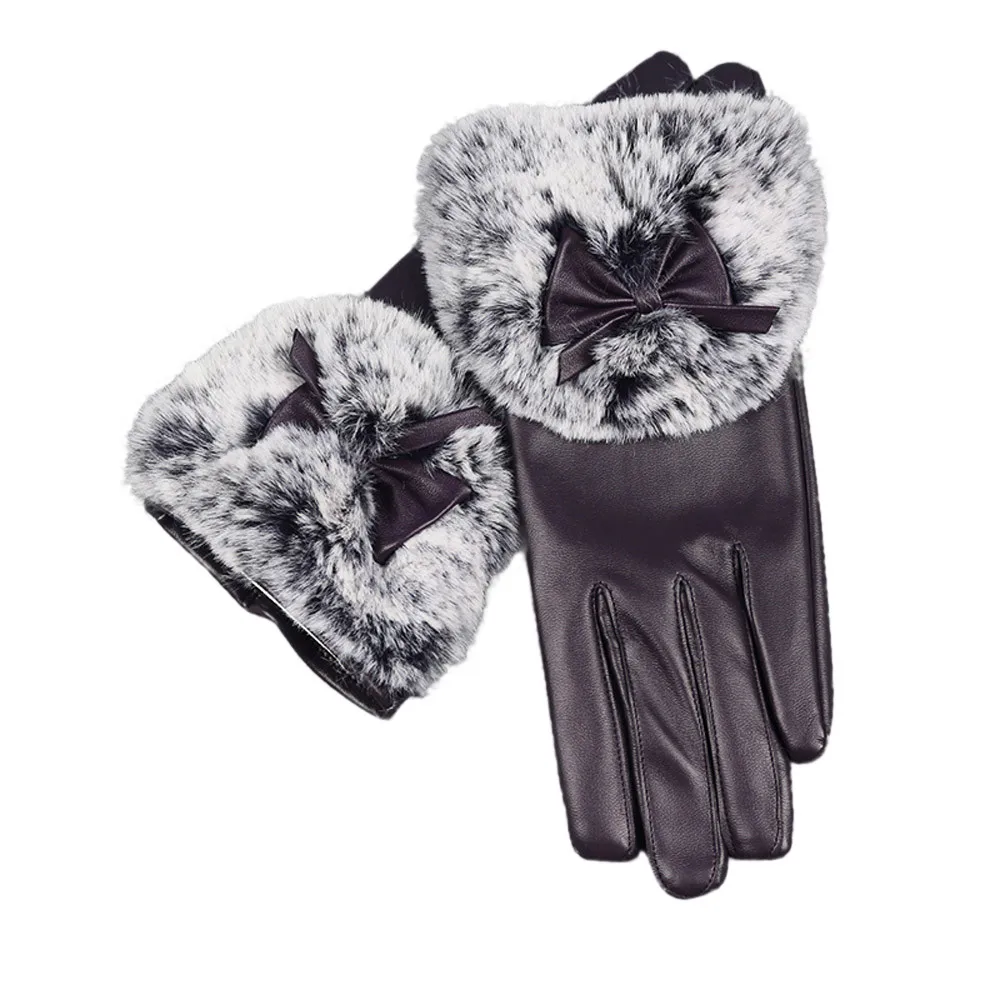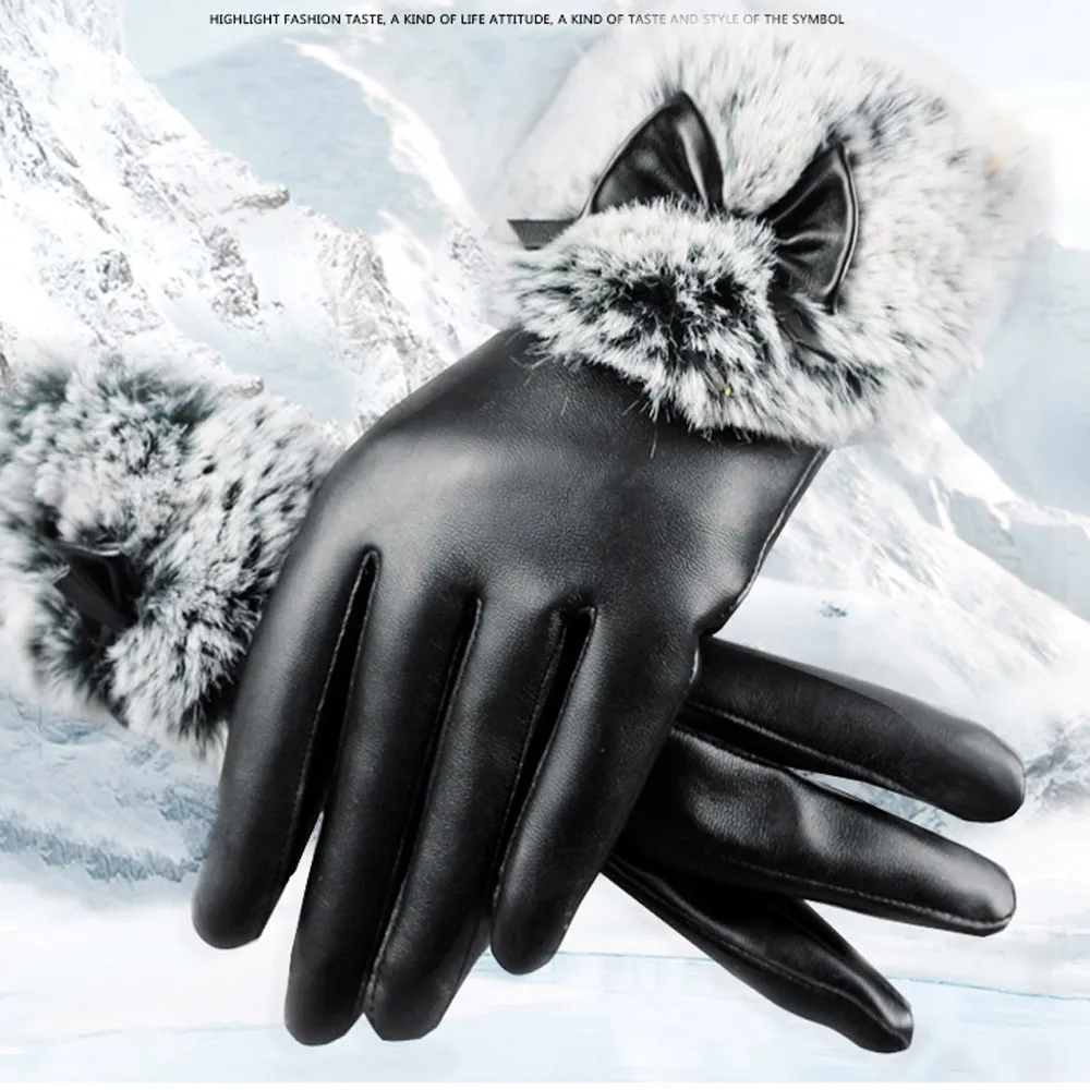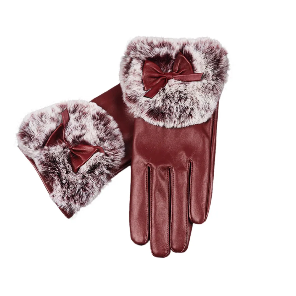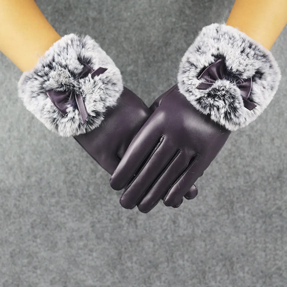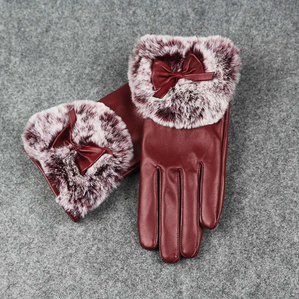 Модные женские перчатки из искусственной кожи; сезон осень-зима; теплые варежки с бантом