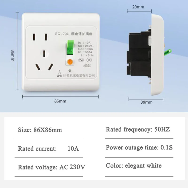 Презентация: Размеры: 86X86mm Номинальный ток: 10A Номинальное напряжение: AC 230 В Номинальная частота: 50 Гц Мощность время отключения: 0,1 S Цвет: элегантный белый отключающая способность: 1500A номинальный рабочий диапазон частот: 50A Номинальный остаточный Рабочий ток: 30 мА Характеристика: 1. От одного до одного защита: когда происходит утечка, В источника питания отрезается быстро и не влияет на удобство использования других электрических приборов. Защита от утечки отключения времени 0,1 секунд, 0,1 во-вторых отключен. 2. Огнестойкий Поликарбонат, держитесь подальше от огня. Держите подальше от пожарной опасности и герметичный дизайн безопаснее. 3. Конструкция предотвращения утечки, высокая изоляция. Мощные приборы: кондиционер/водонагреватель/микроволновая печь/Электрическое отопление. Посылка включает в себя: 1 шт. разъем питания