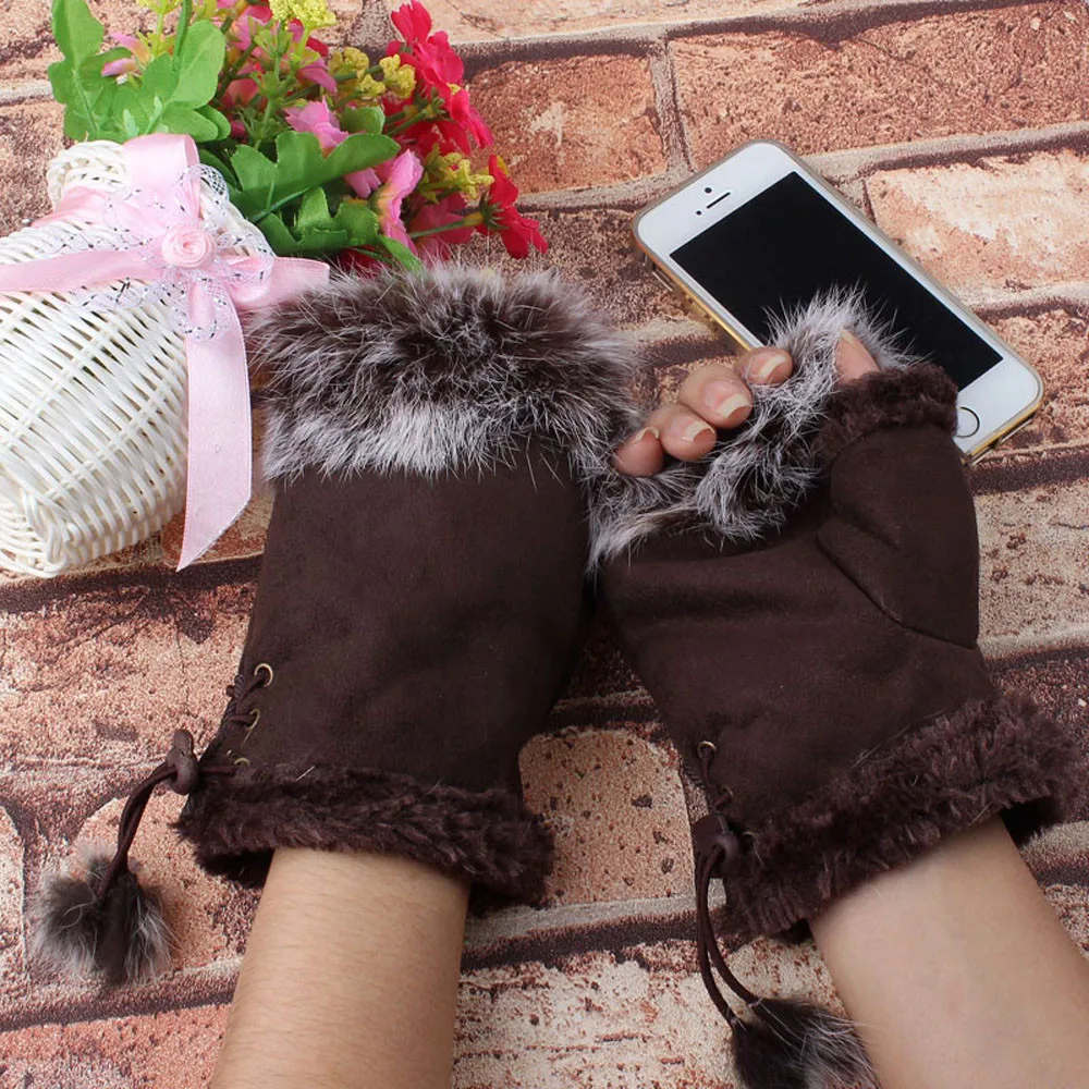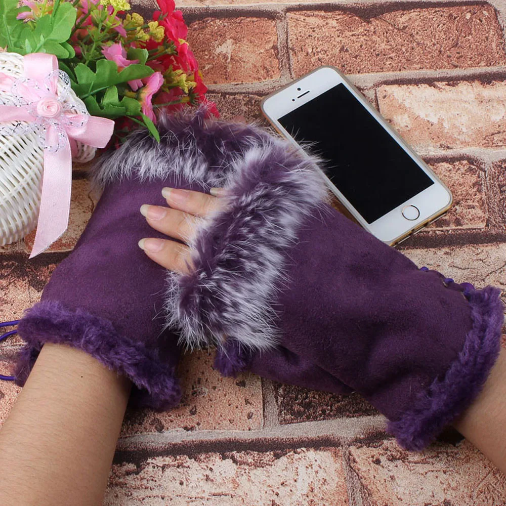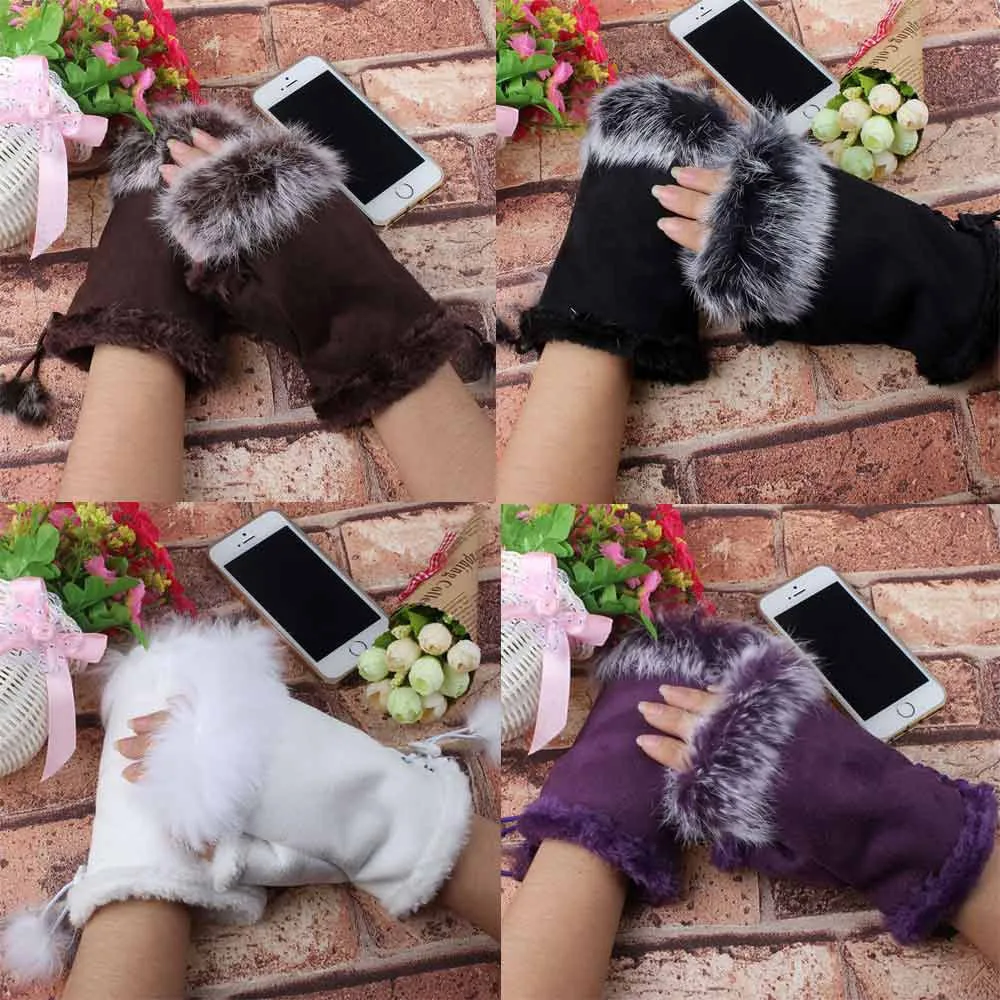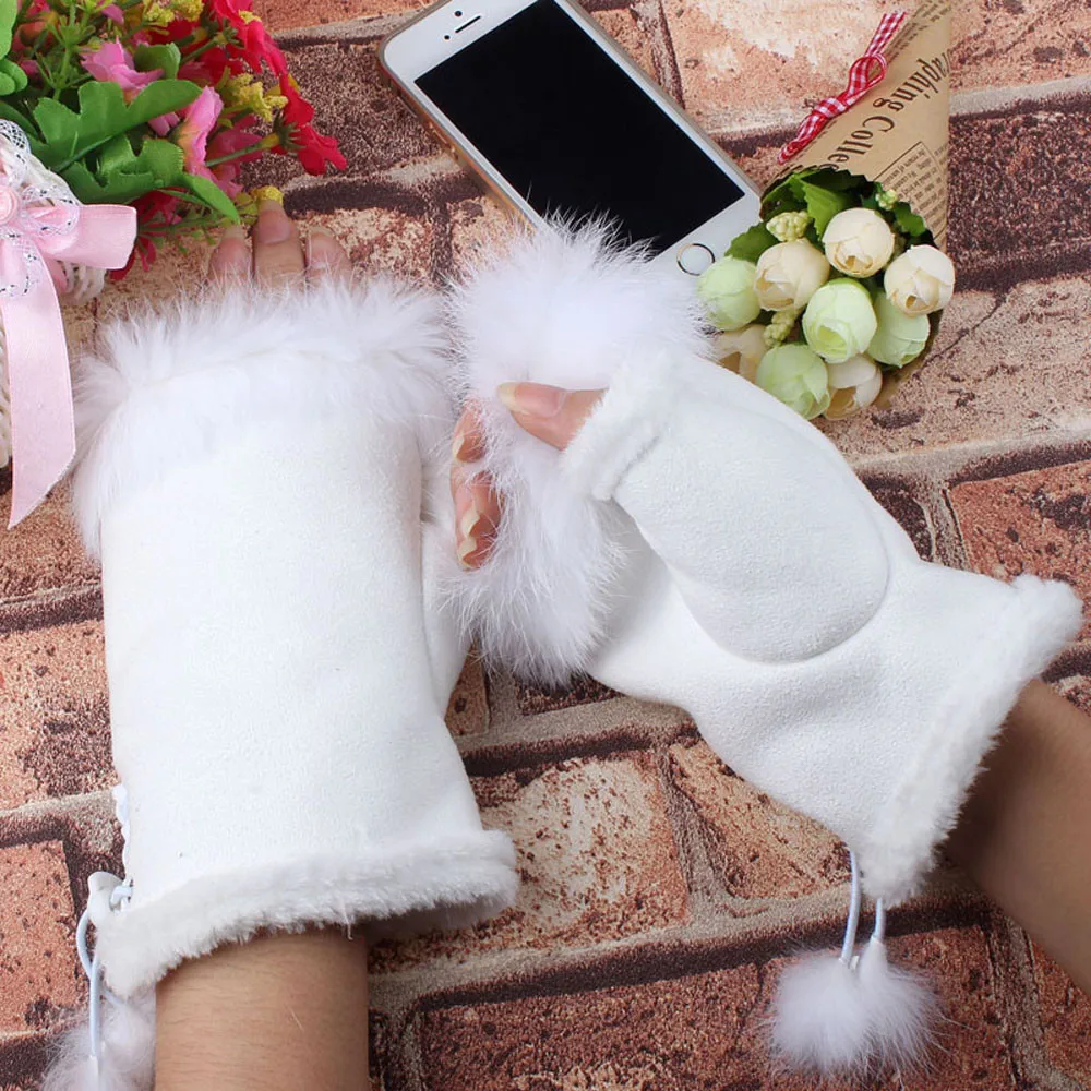 1 пара Женские зимние перчатки из искусственного кроличьего меха без пальцев