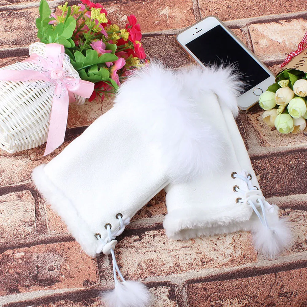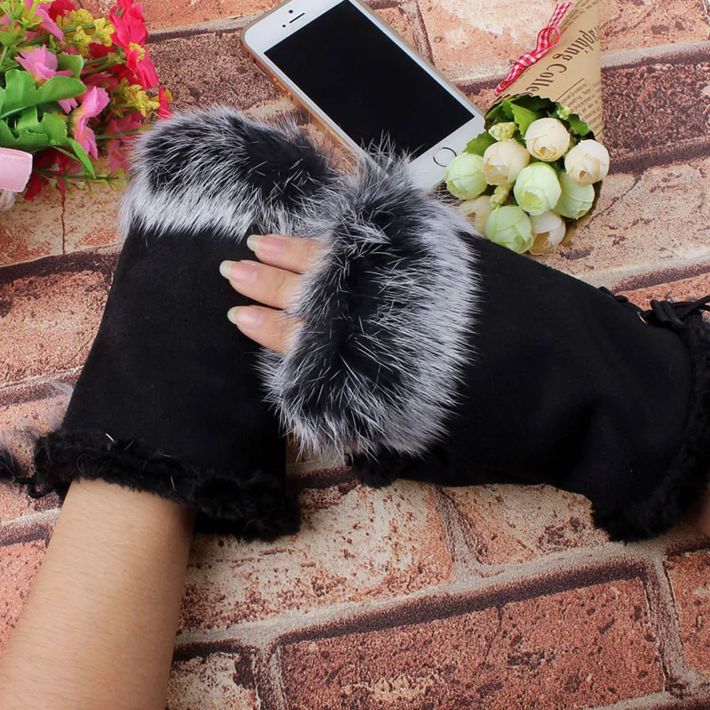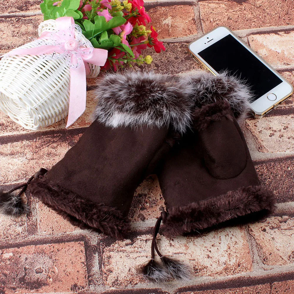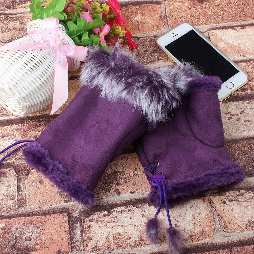 1 пара Женские зимние перчатки из искусственного кроличьего меха без пальцев
