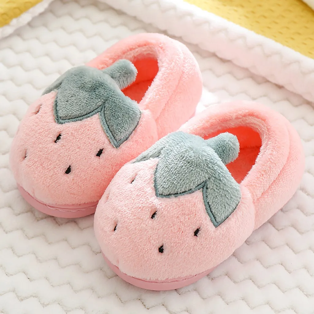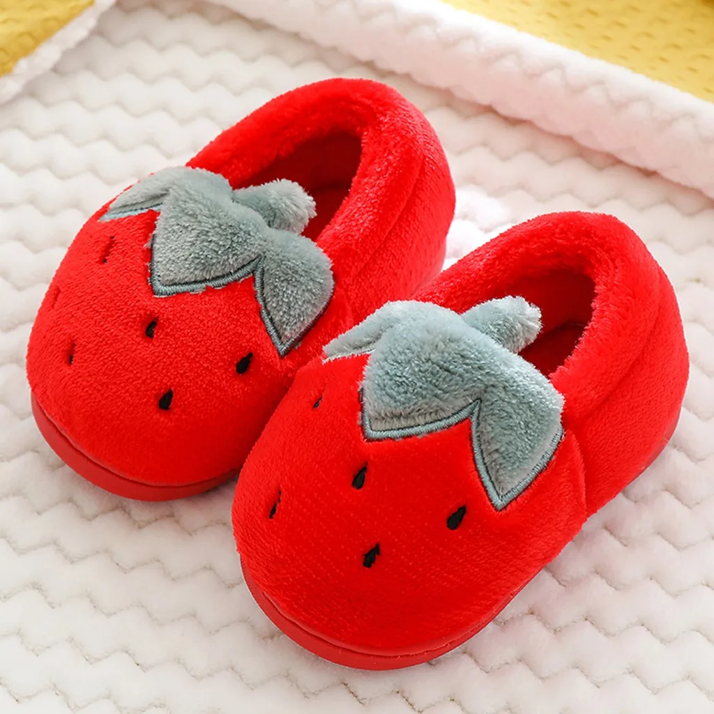 Детская зимняя теплая Повседневная обувь из флока с милыми фруктами для маленьких мальчиков и девочек