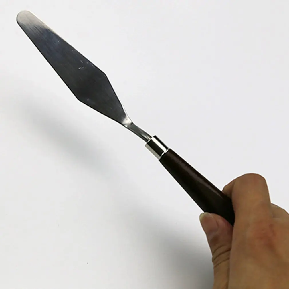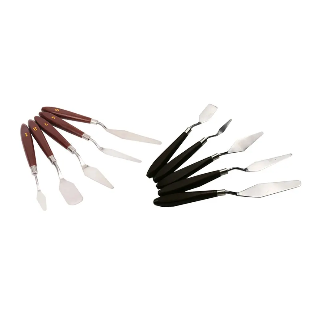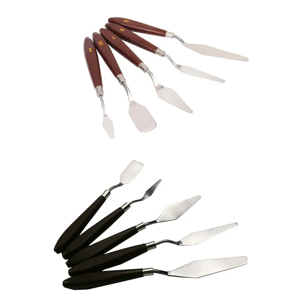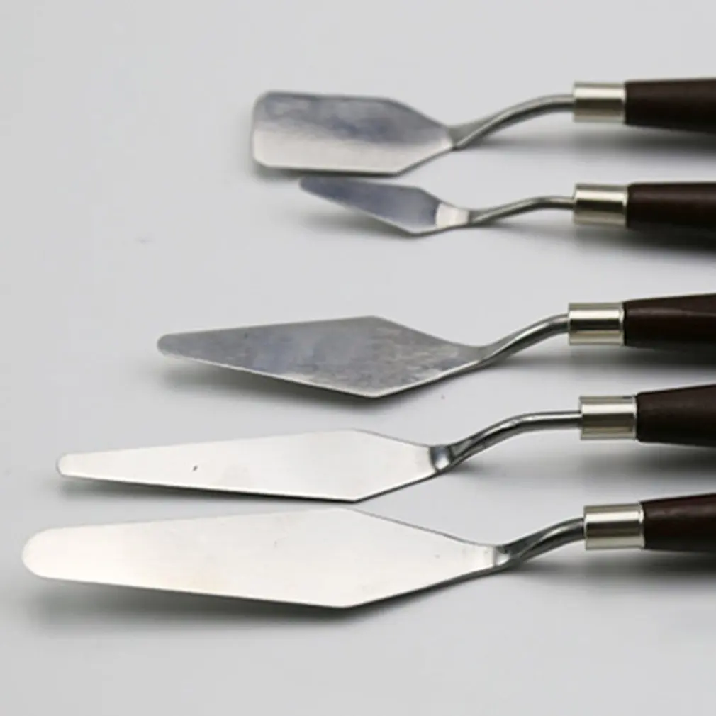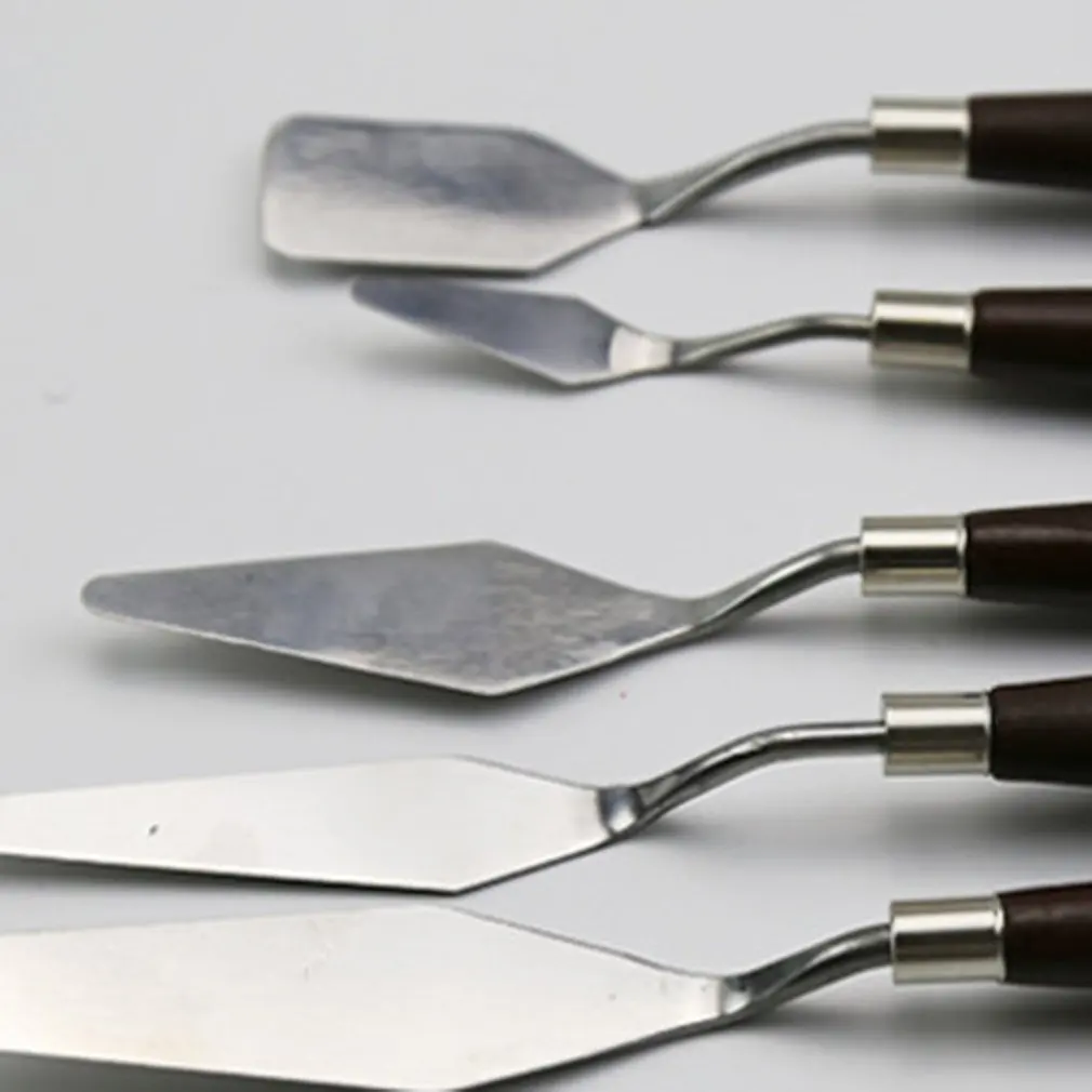 Скребок для масляной краски, 5 шт., набор с деревянной ручкой, нержавеющая сталь, инструмент для рисования, палитра, нож, лопата, инструменты для рисования