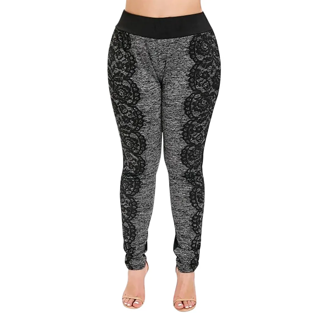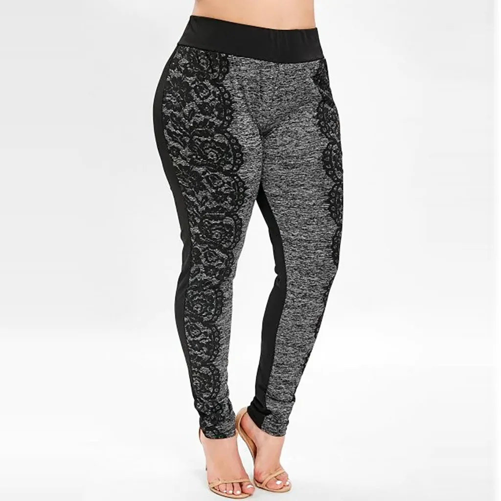 Особенности: размер плюс, эластичный высокий, кружево, Сращивание, эластичная резинка на талии,Длинные штаны,Подходит для всех сезоновБрюки, повседневные брюки.