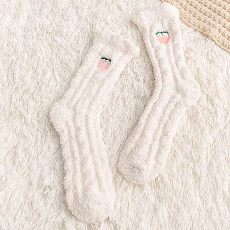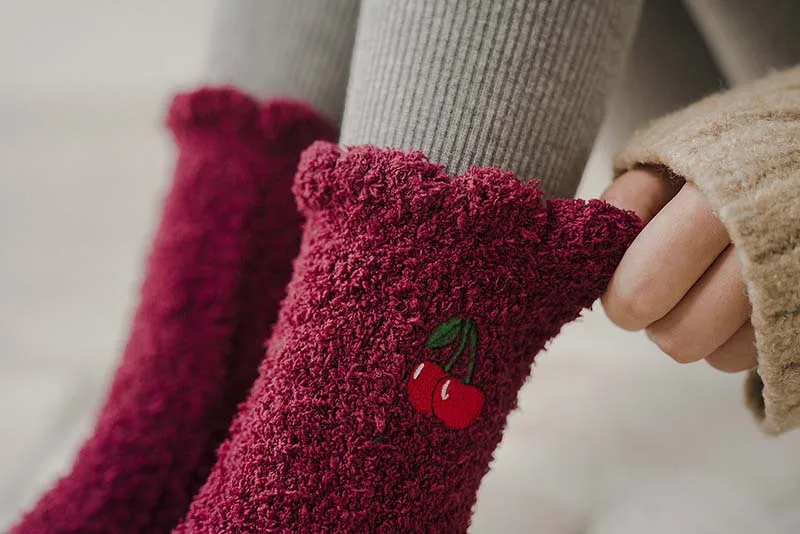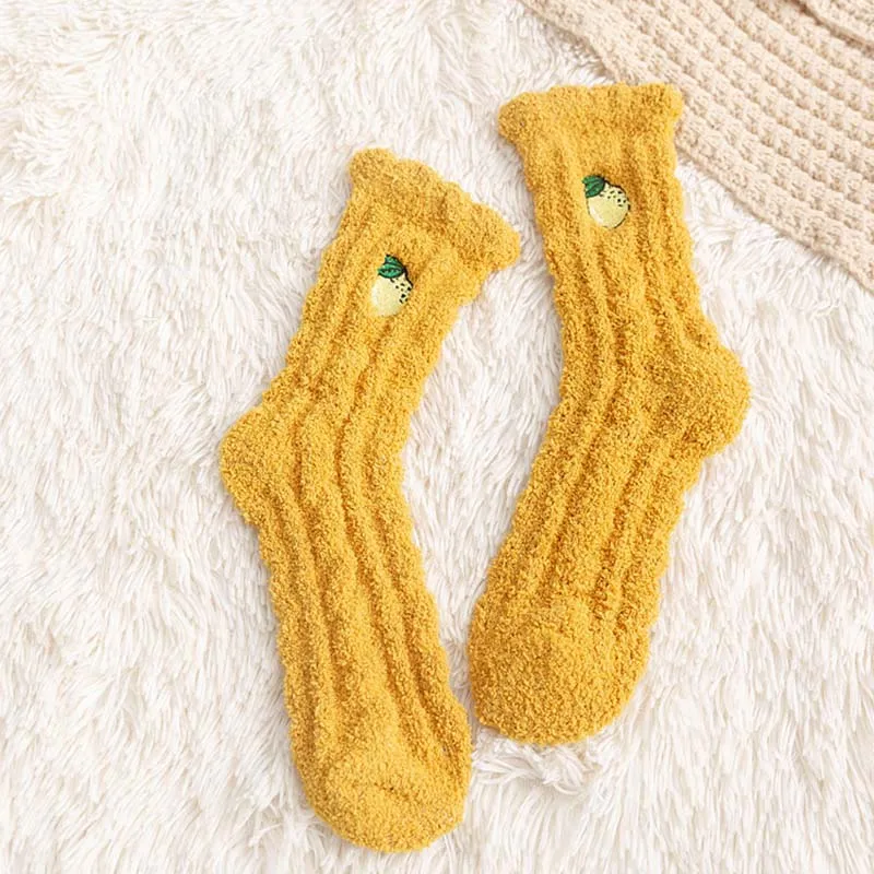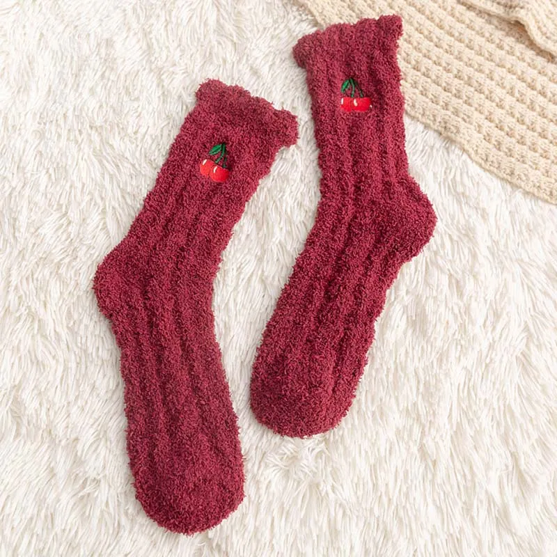 Christmas Embroidery Fruit Funny Socks Coral Fleece Warmer Cute Socks Women Divertidos Creative Floor Sokken Harajuku Calcetines