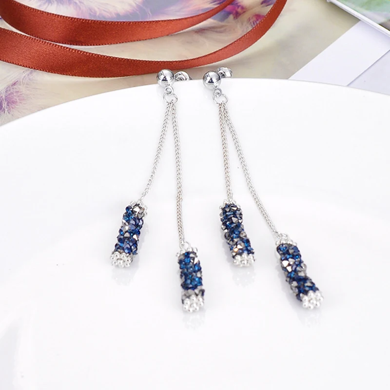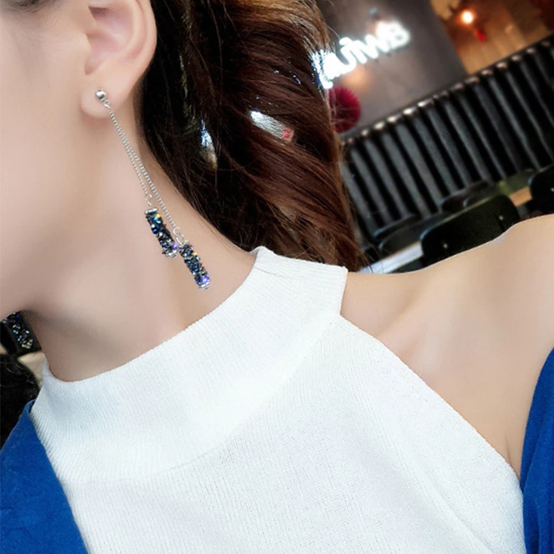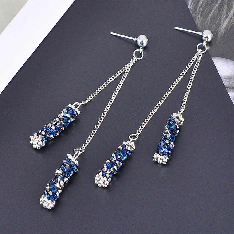 Женские Висячие серьги CARTER LISA, длинные висячие серьги с нитью из голубого и серебристого кристаллов, аксессуары для костюма, подарок