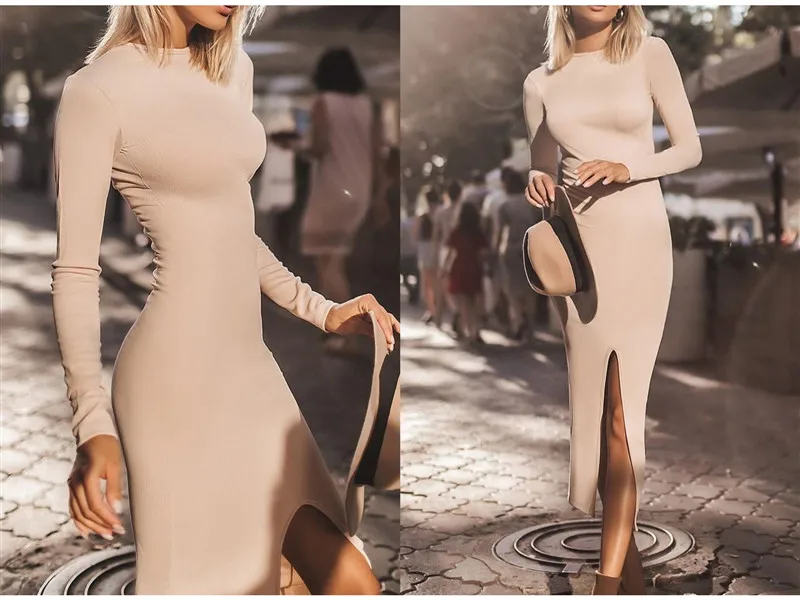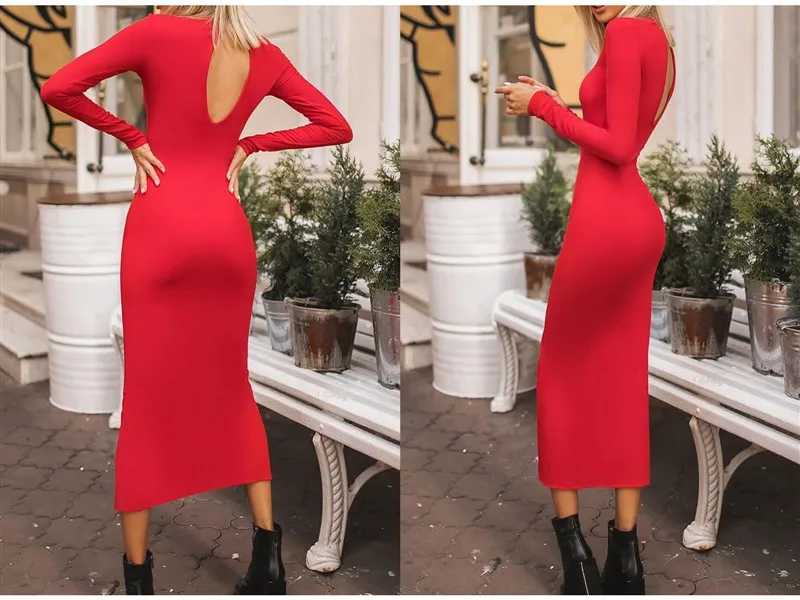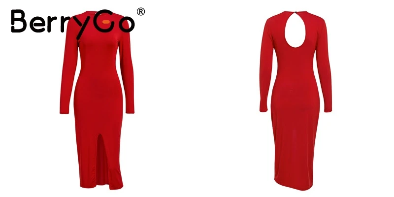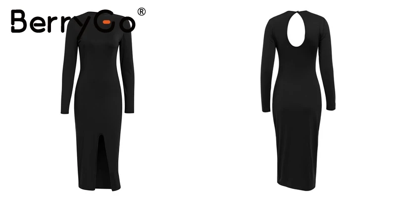 BerryGo, сексуальное облегающее платье с открытой спиной, женское элегантное офисное платье с круглым вырезом и длинным рукавом, осеннее платье-футляр, длинное платье для работы и вечеринок