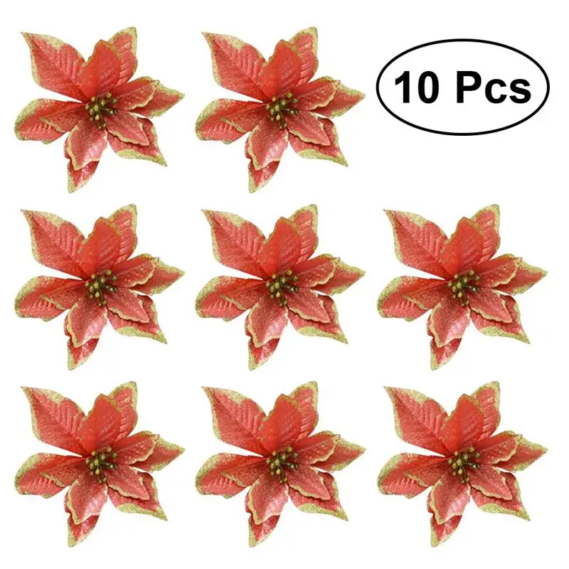 10 шт 13 см блестящие Искусственные Свадебные Рождественские цветы Рождественская елка венки Декор Орнамент (красный)
