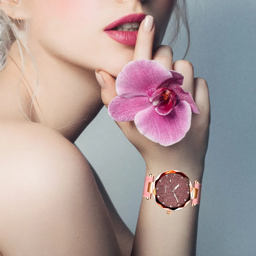 Новые женские модные стразы, розовое золото, кварцевые часы, женские часы с ремешком