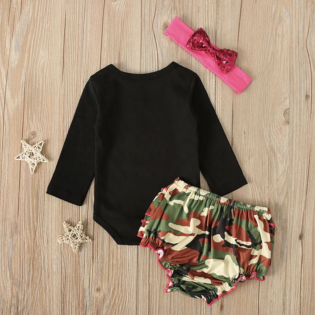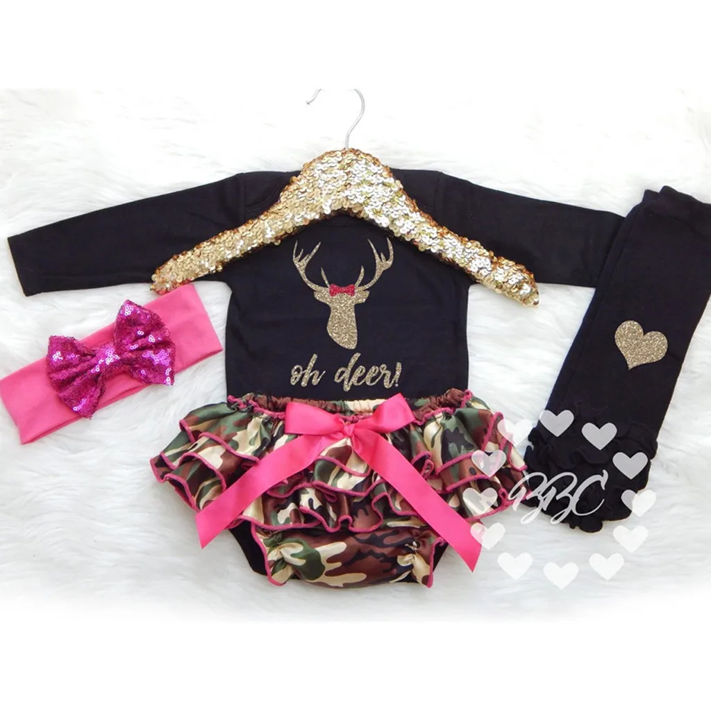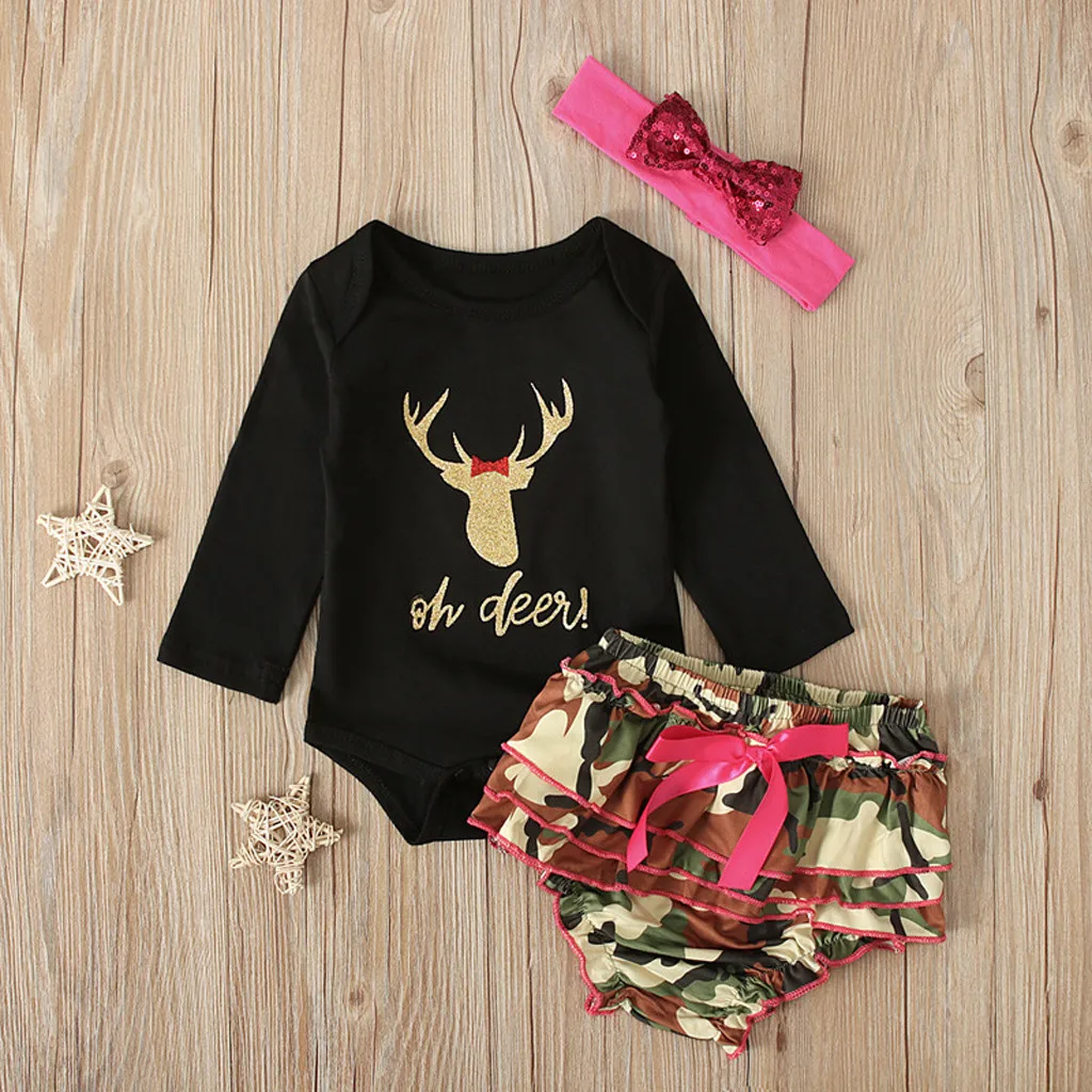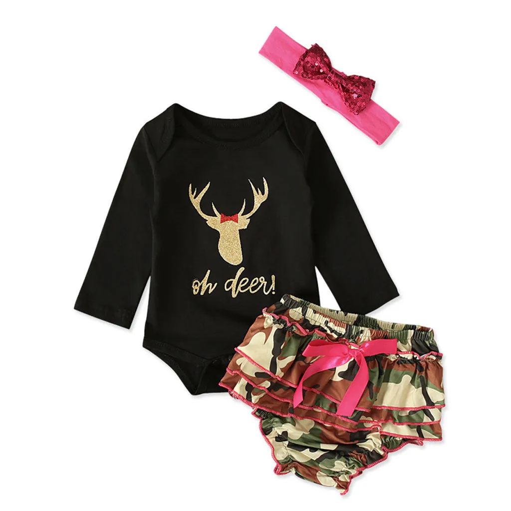 Комбинезон с рождественским оленем для новорожденных и маленьких девочек; Камуфляжный комплект шорт