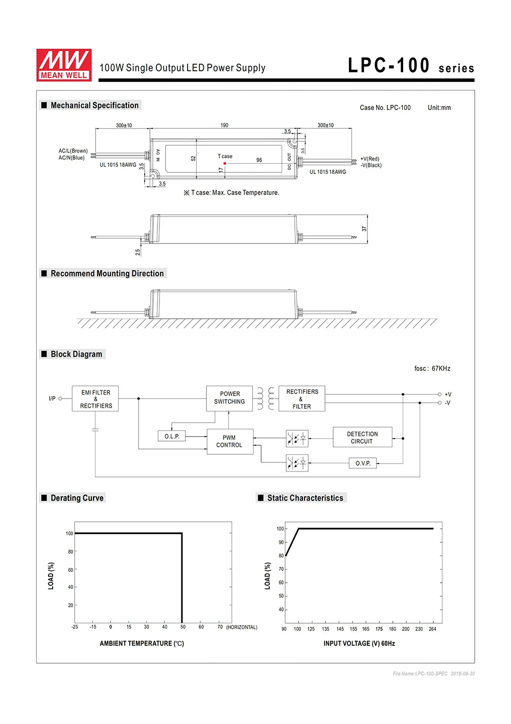 Постоянный ток дизайн Универсальный AC вход/полный диапазон Выдерживает перенапряжение 300 В переменного тока в течение 5 секунд Высокая Эффективность до 90% Защита от короткого замыкания/перенапряжения Охлаждение с помощью бесплатной конвекции воздуха Полностью инкапсулированный с уровнем IP67 Полностью изолированный пластиковый чехол Блок питания класса II, без FG Подходит для Светодиодный приспособления или устройства (например, светодиодный Декор или рекламные устройства) Тест на сжигание при полной нагрузке (100%) Низкая стоимость, высокая надежность 2 года гарантии